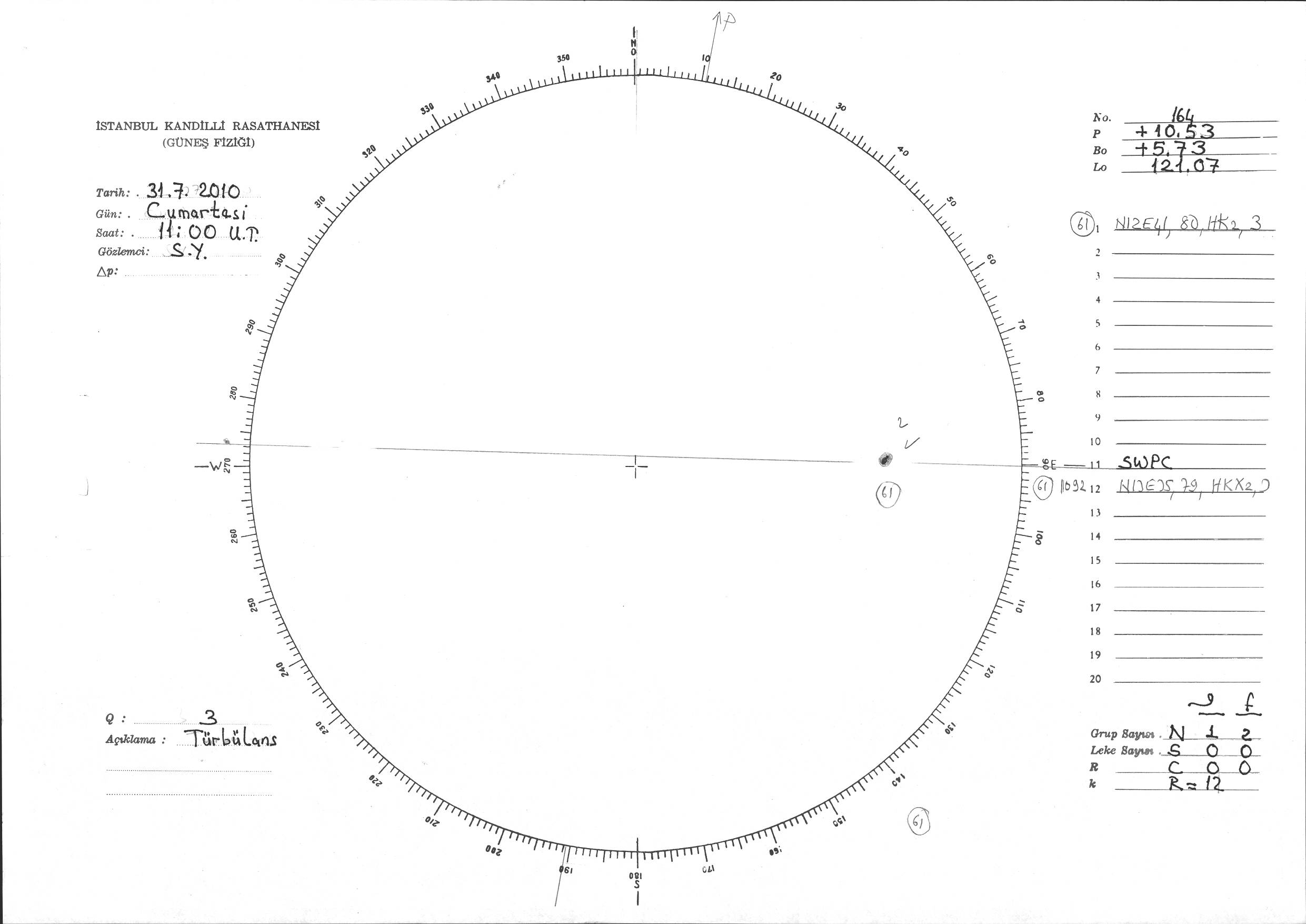 Güneş Lekesi Çizimi - 31.07.2010