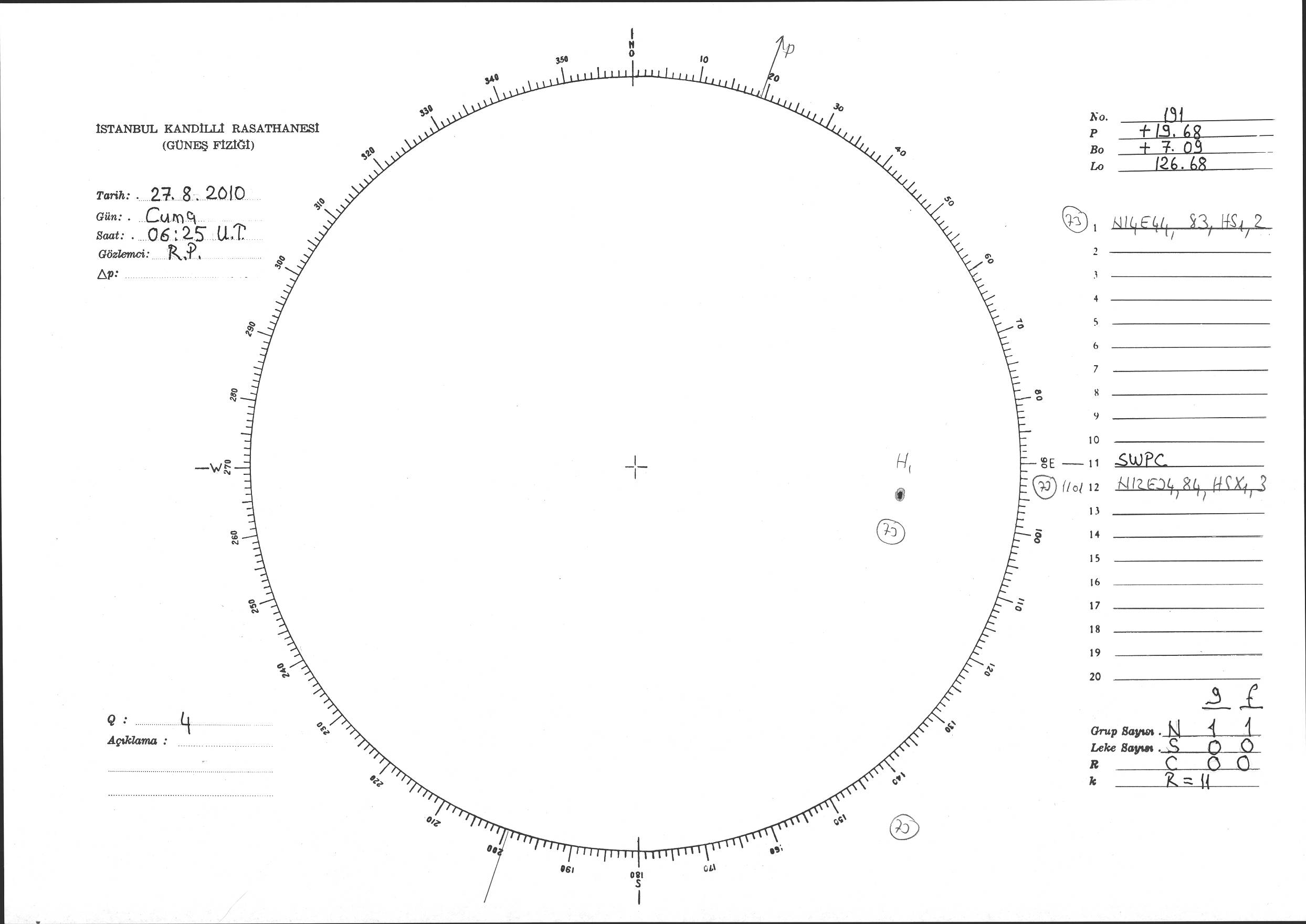 Güneş Lekesi Çizimi - 27.08.2010