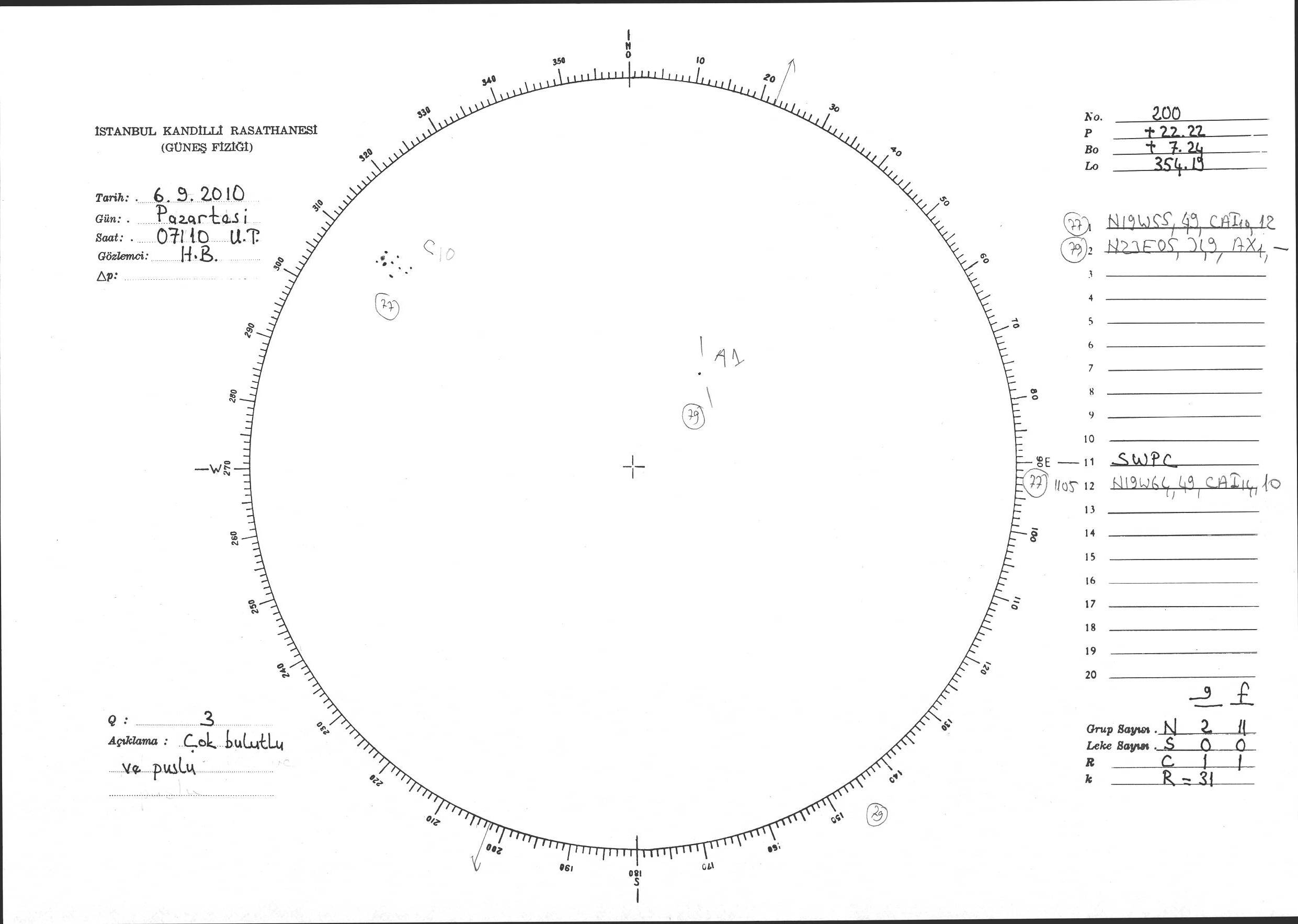 Güneş Lekesi Çizimi - 06.09.2010