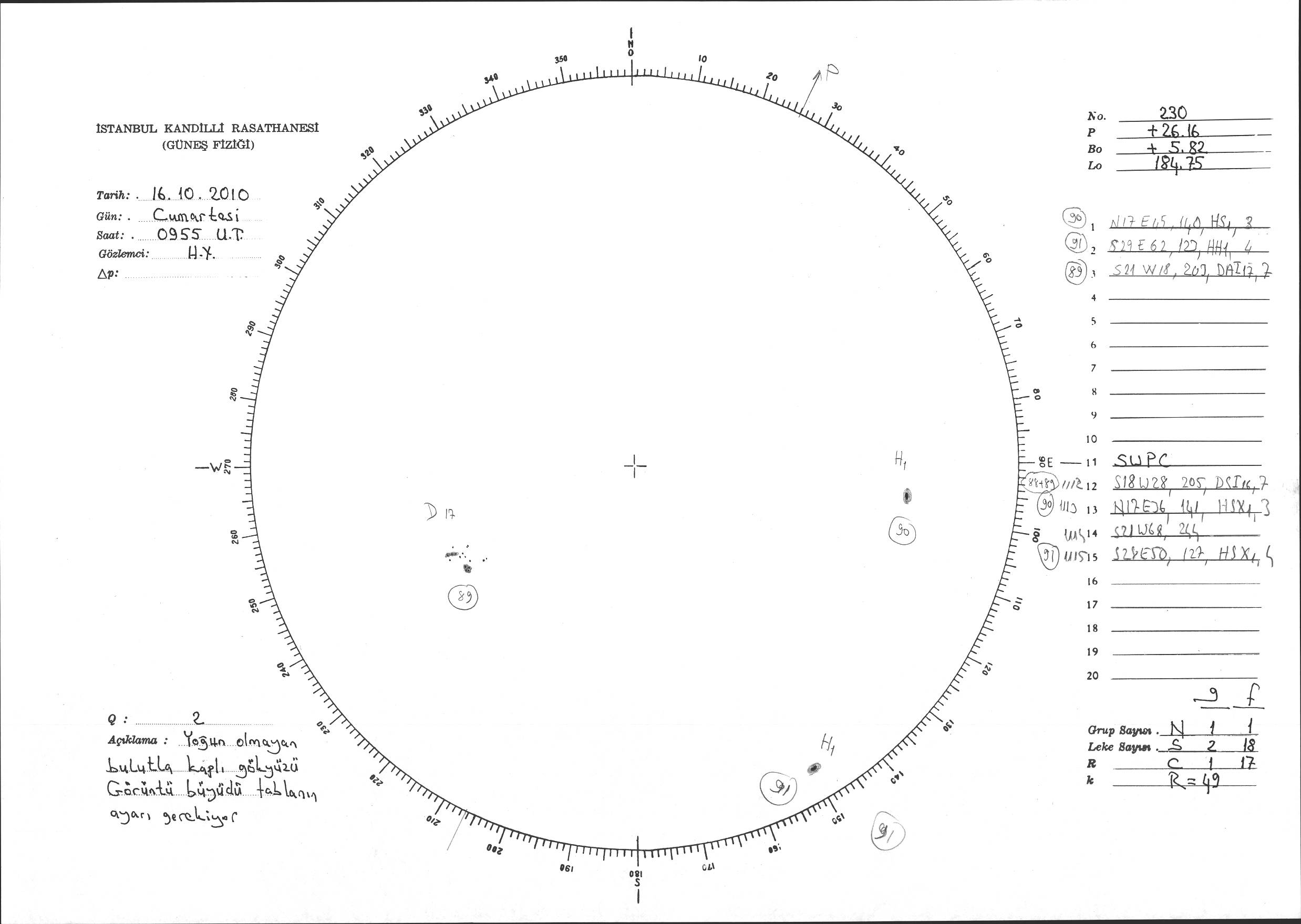 Güneş Lekesi Çizimi - 16.10.2010