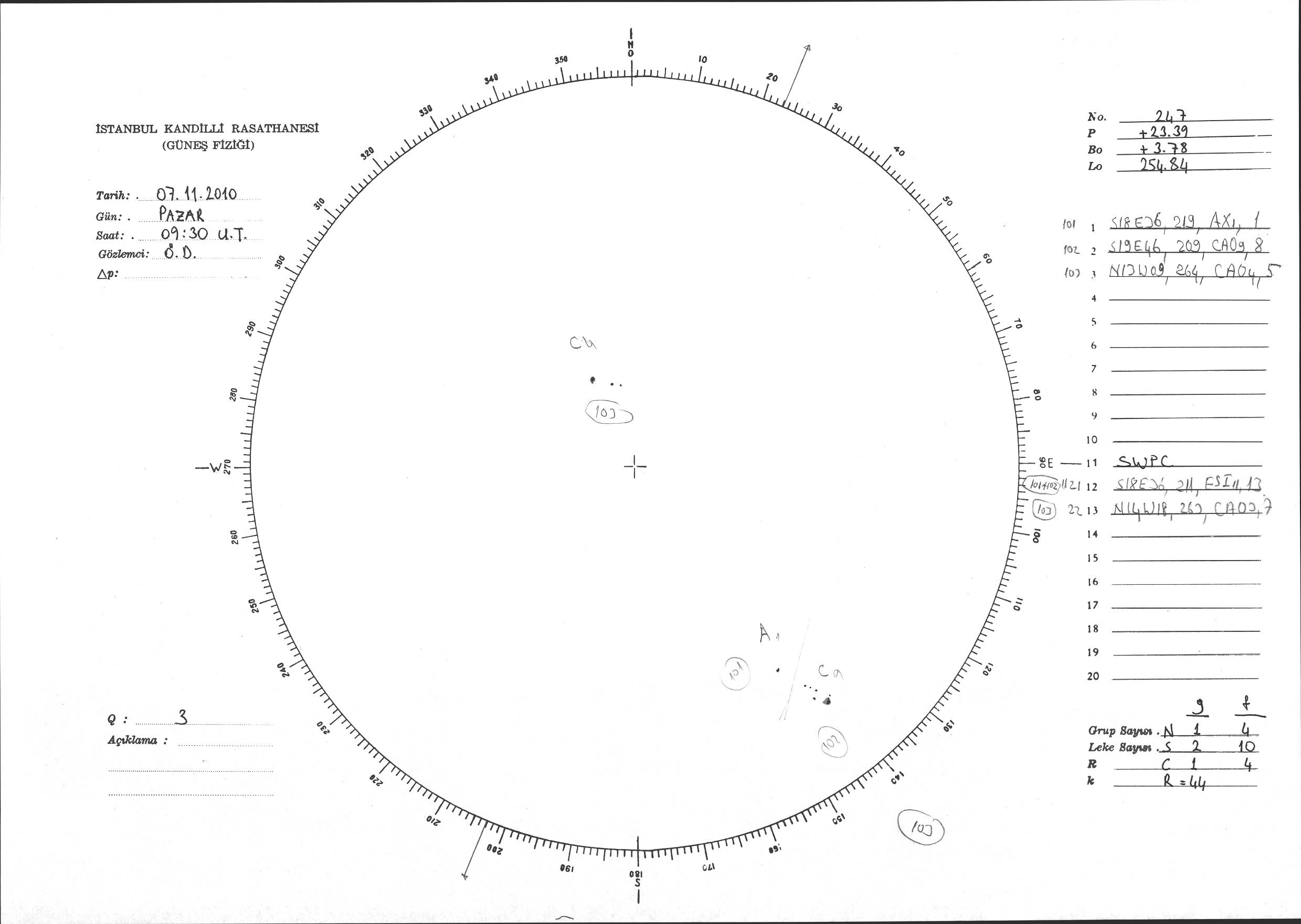 Güneş Lekesi Çizimi - 07.11.2010