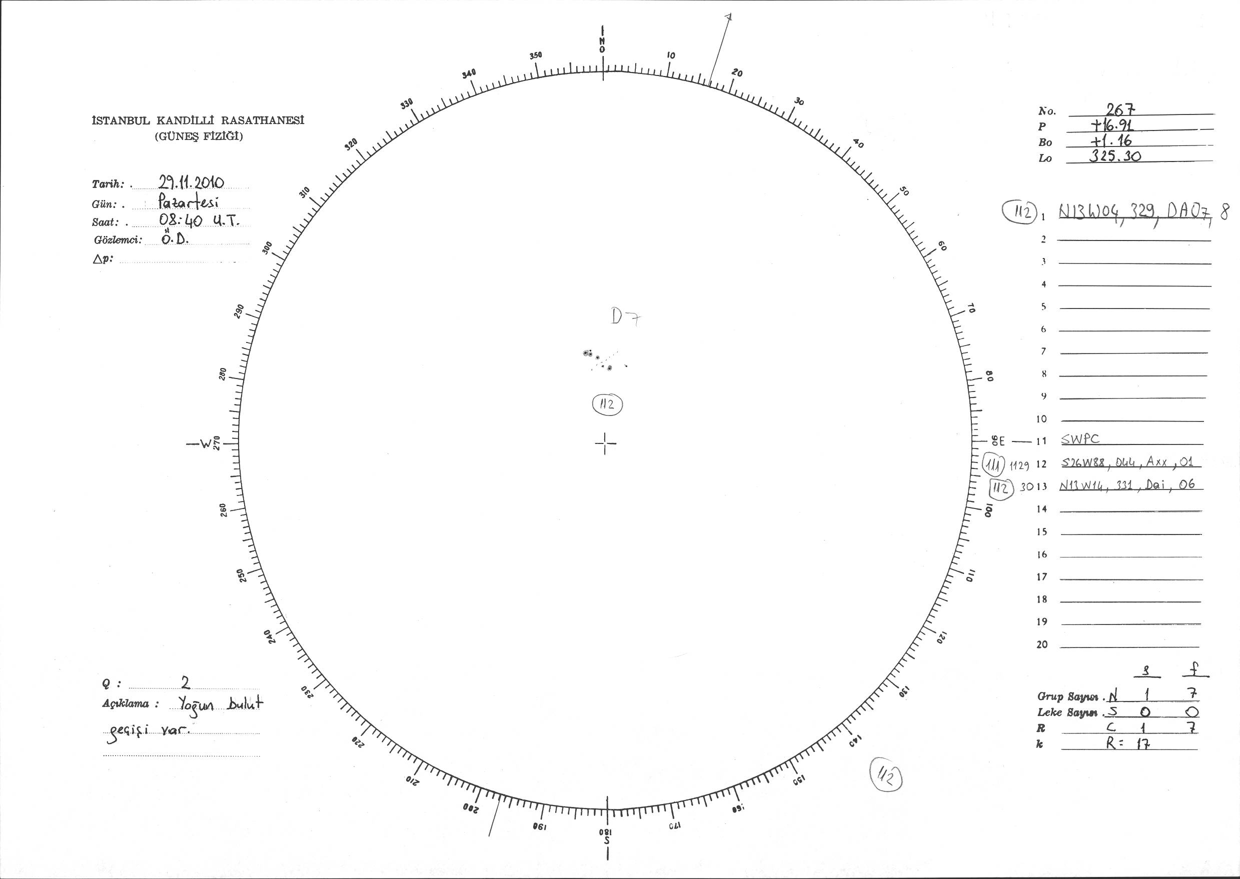 Güneş Lekesi Çizimi - 29.11.2010