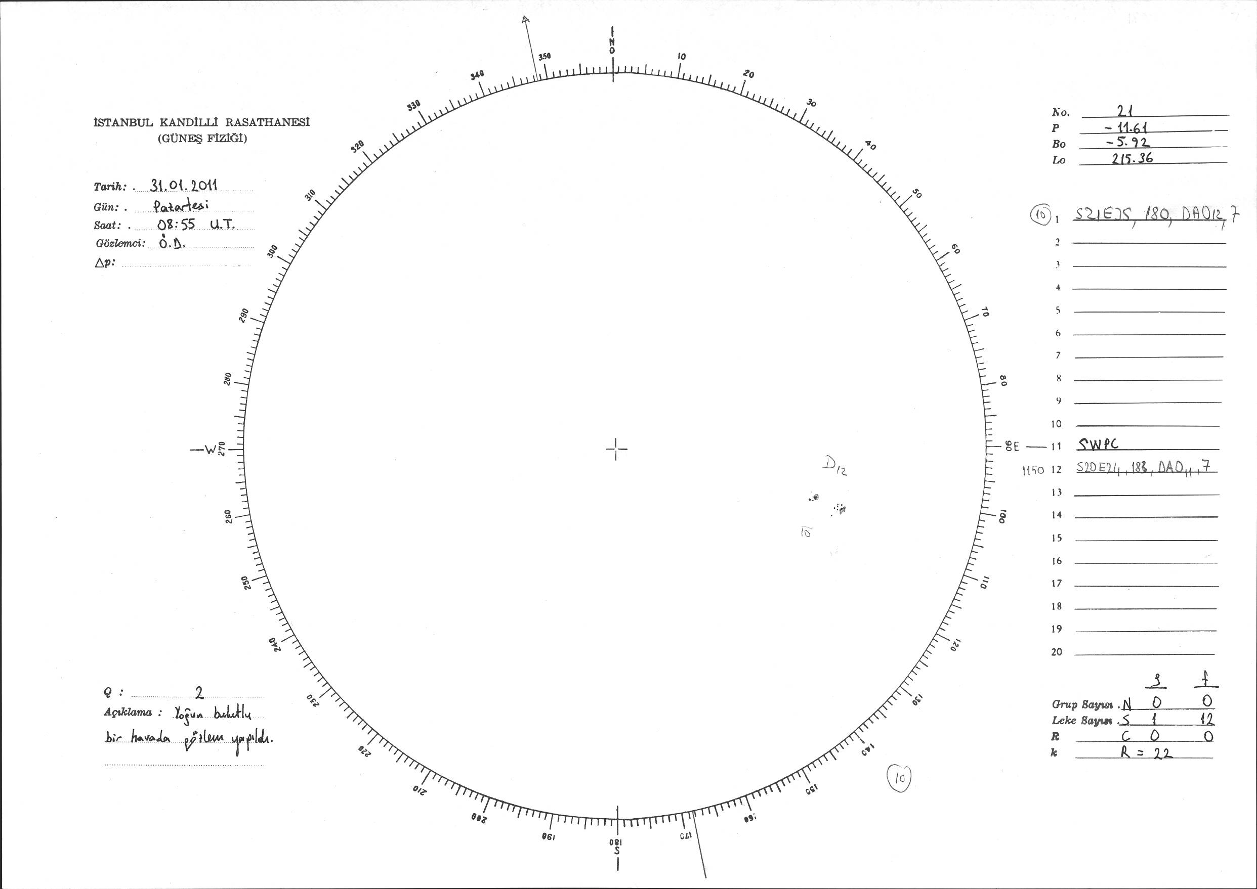Güneş Lekesi Çizimi - 31.01.2011