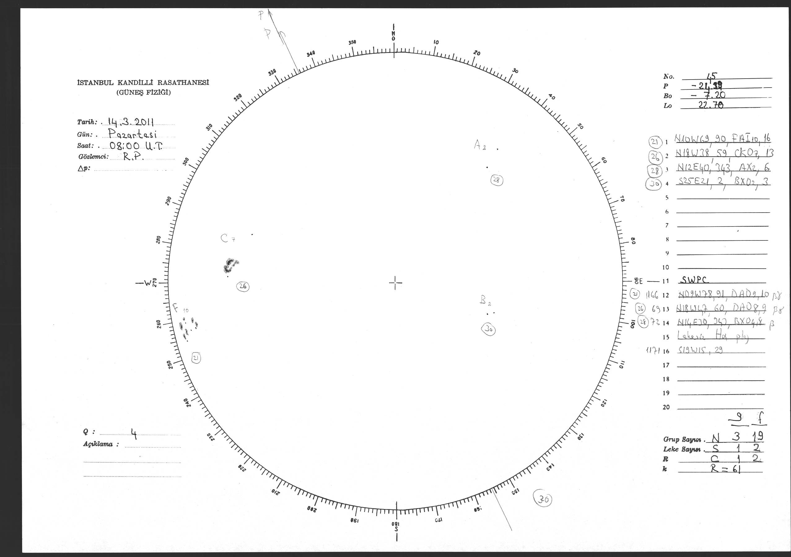 Güneş Lekesi Çizimi - 14.03.2011