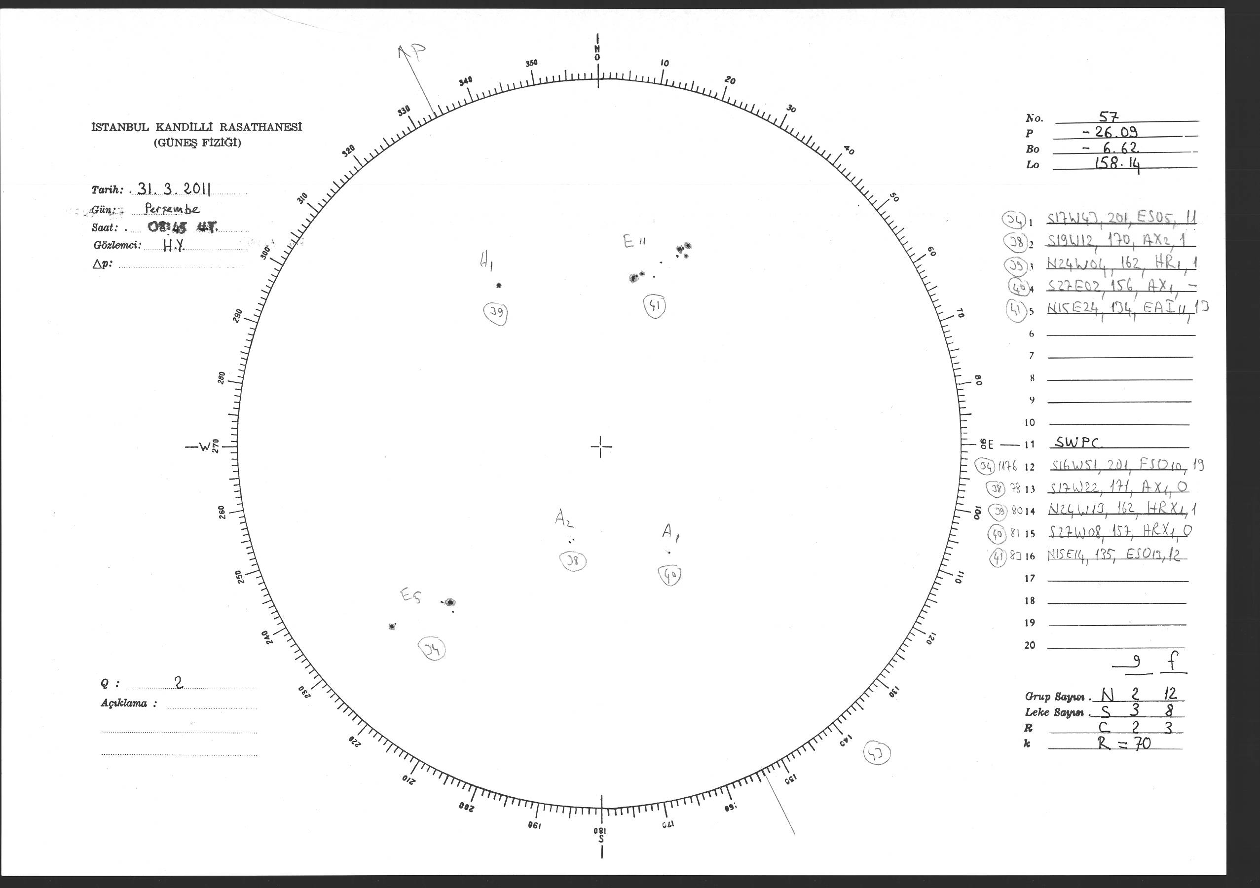 Güneş Lekesi Çizimi - 31.03.2011
