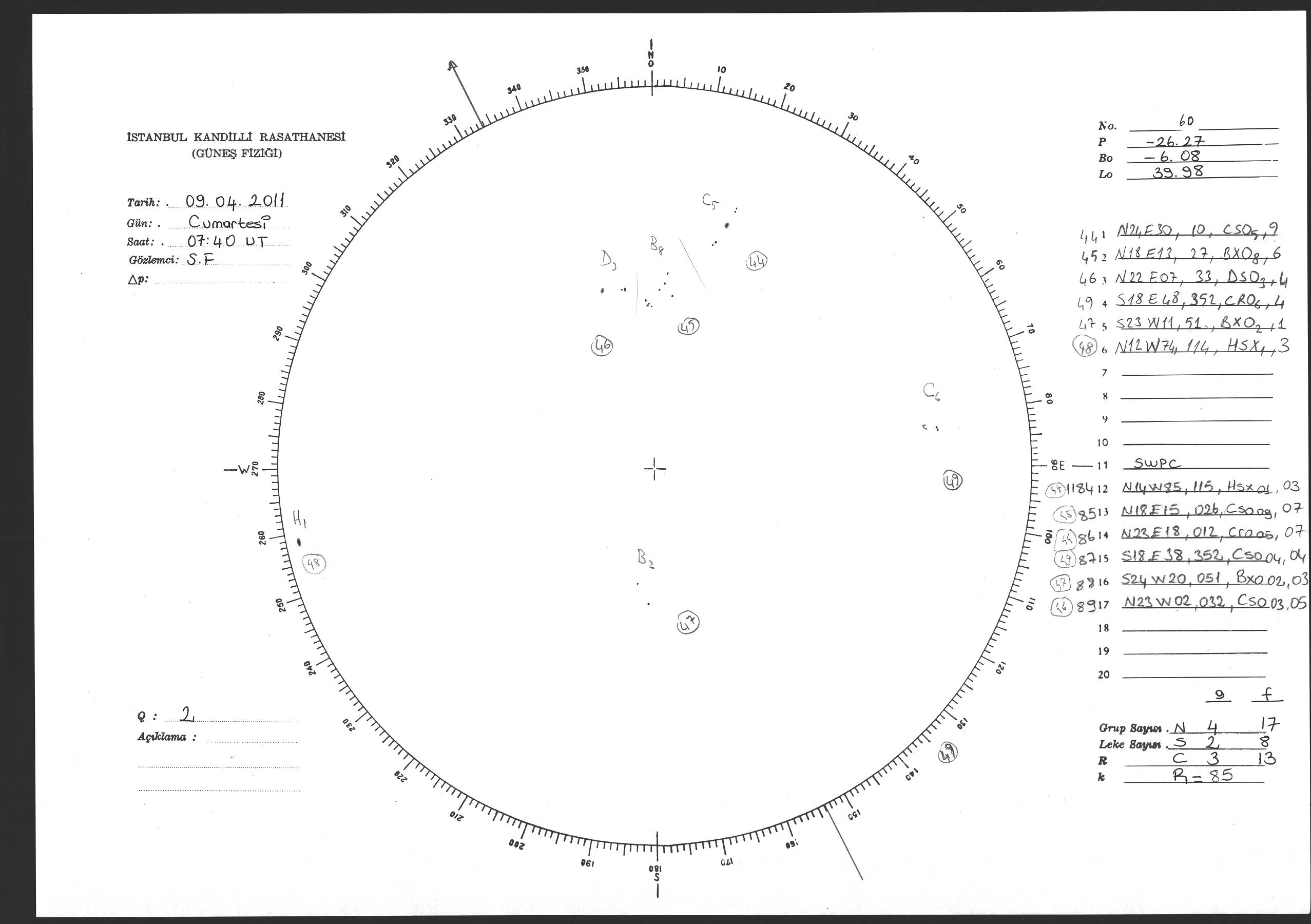Güneş Lekesi Çizimi - 09.04.2011