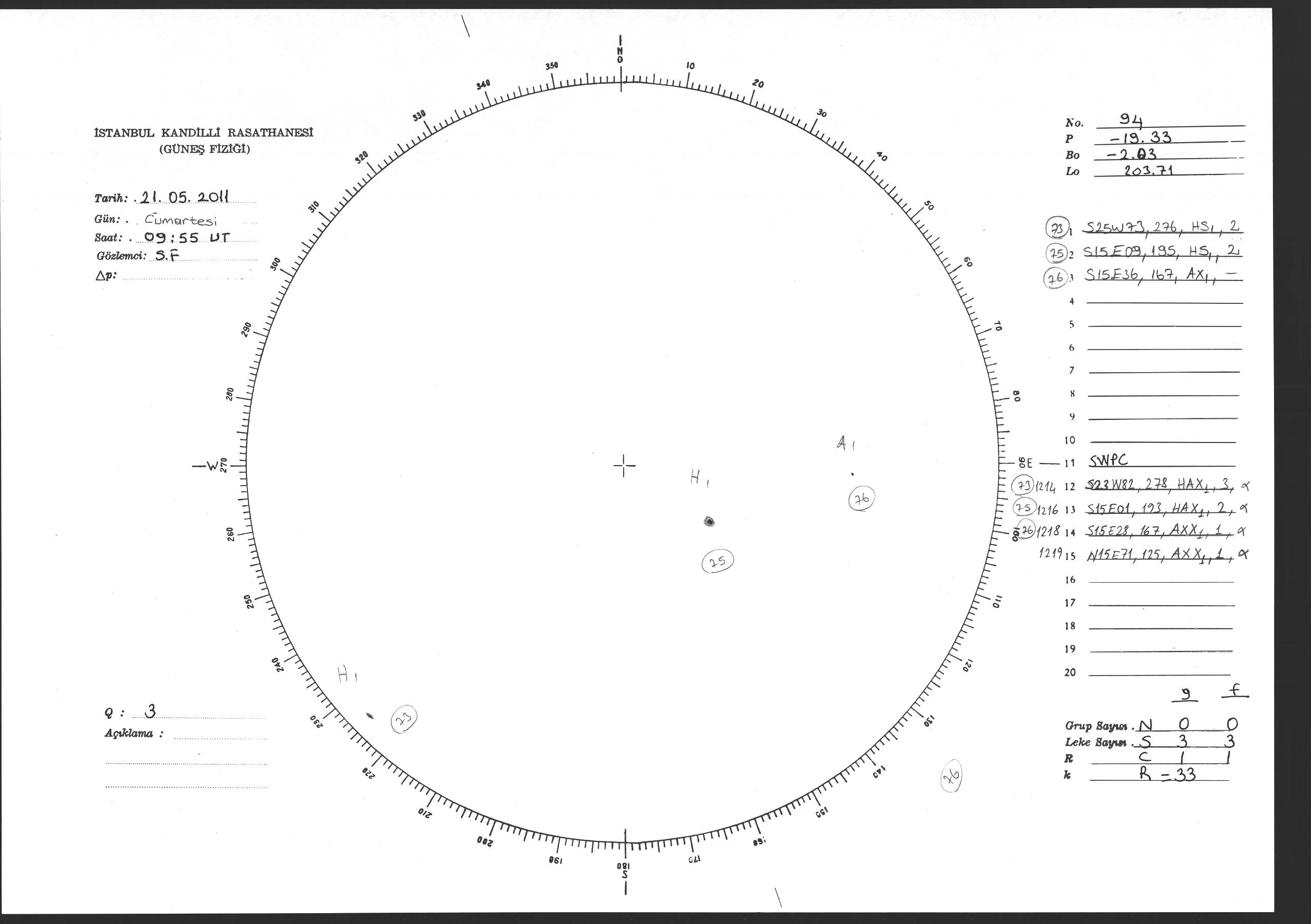 Güneş Lekesi Çizimi - 21.05.2011