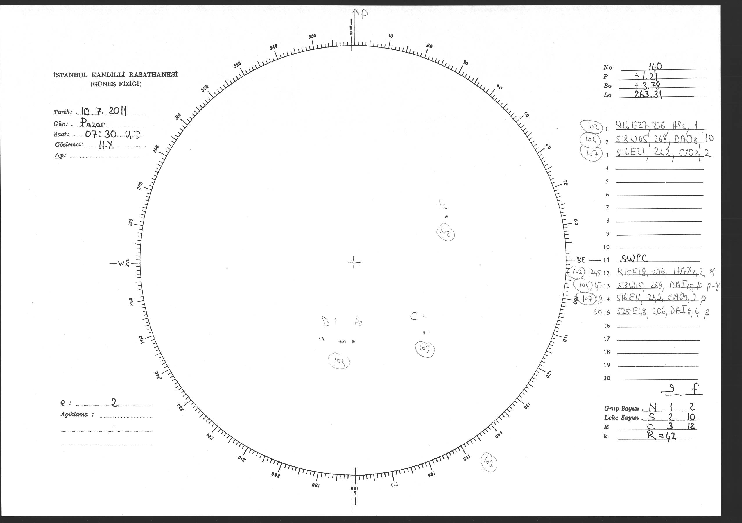 Güneş Lekesi Çizimi - 10.07.2011