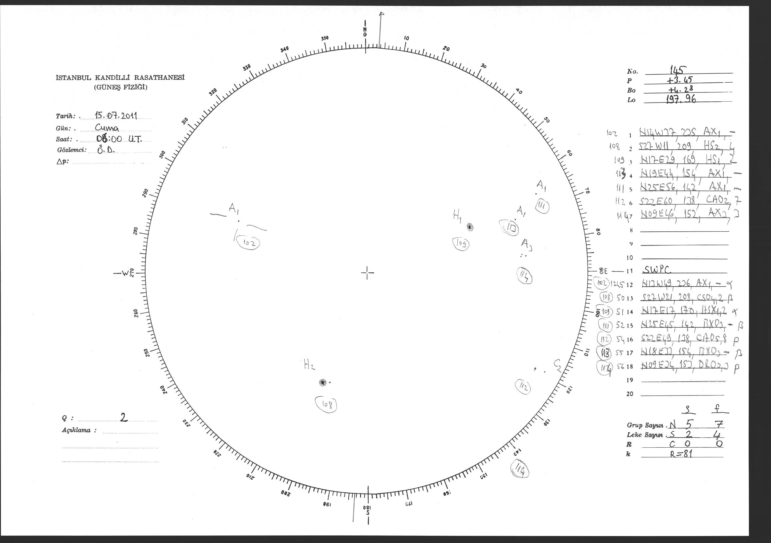 Güneş Lekesi Çizimi - 15.07.2011