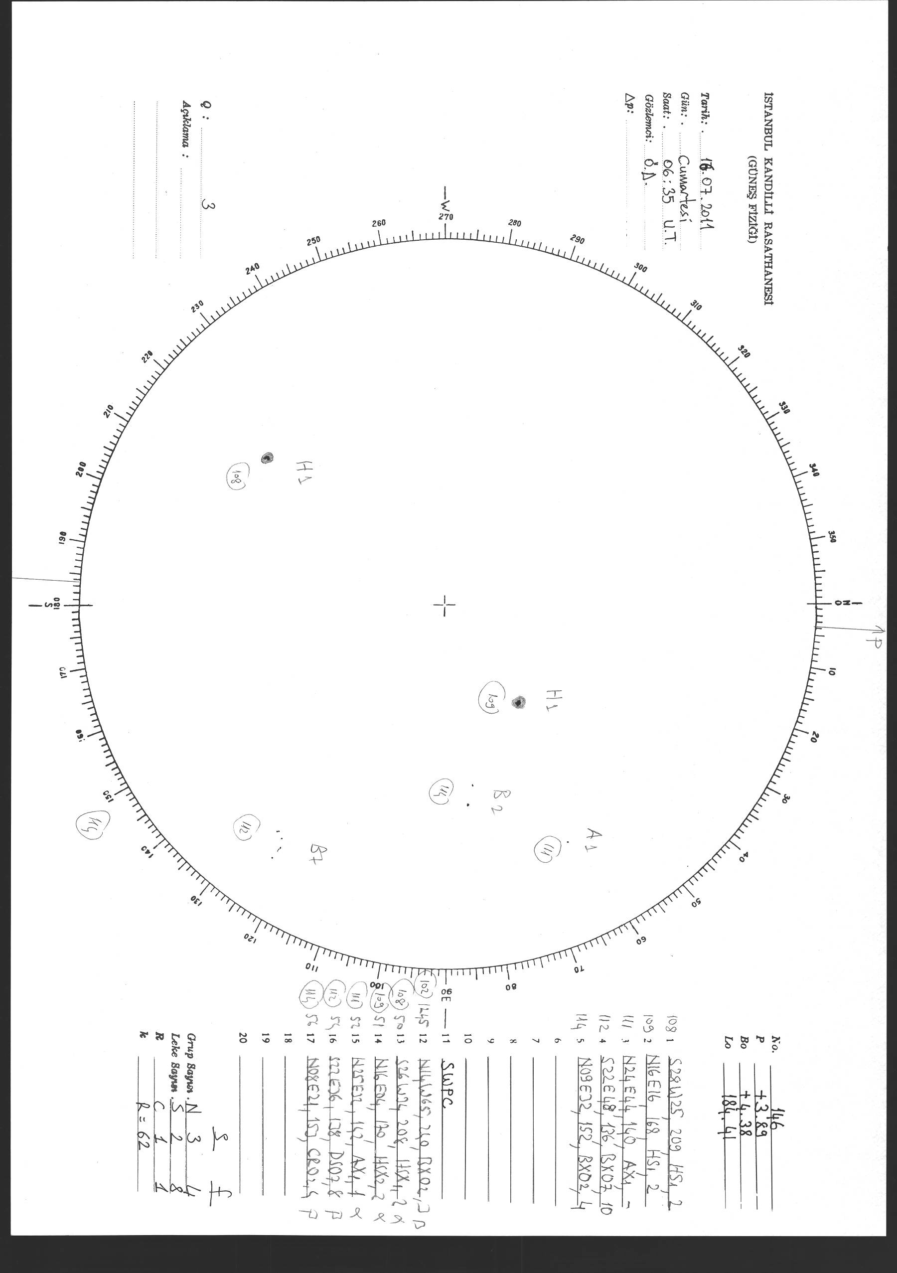 Güneş Lekesi Çizimi - 16.07.2011