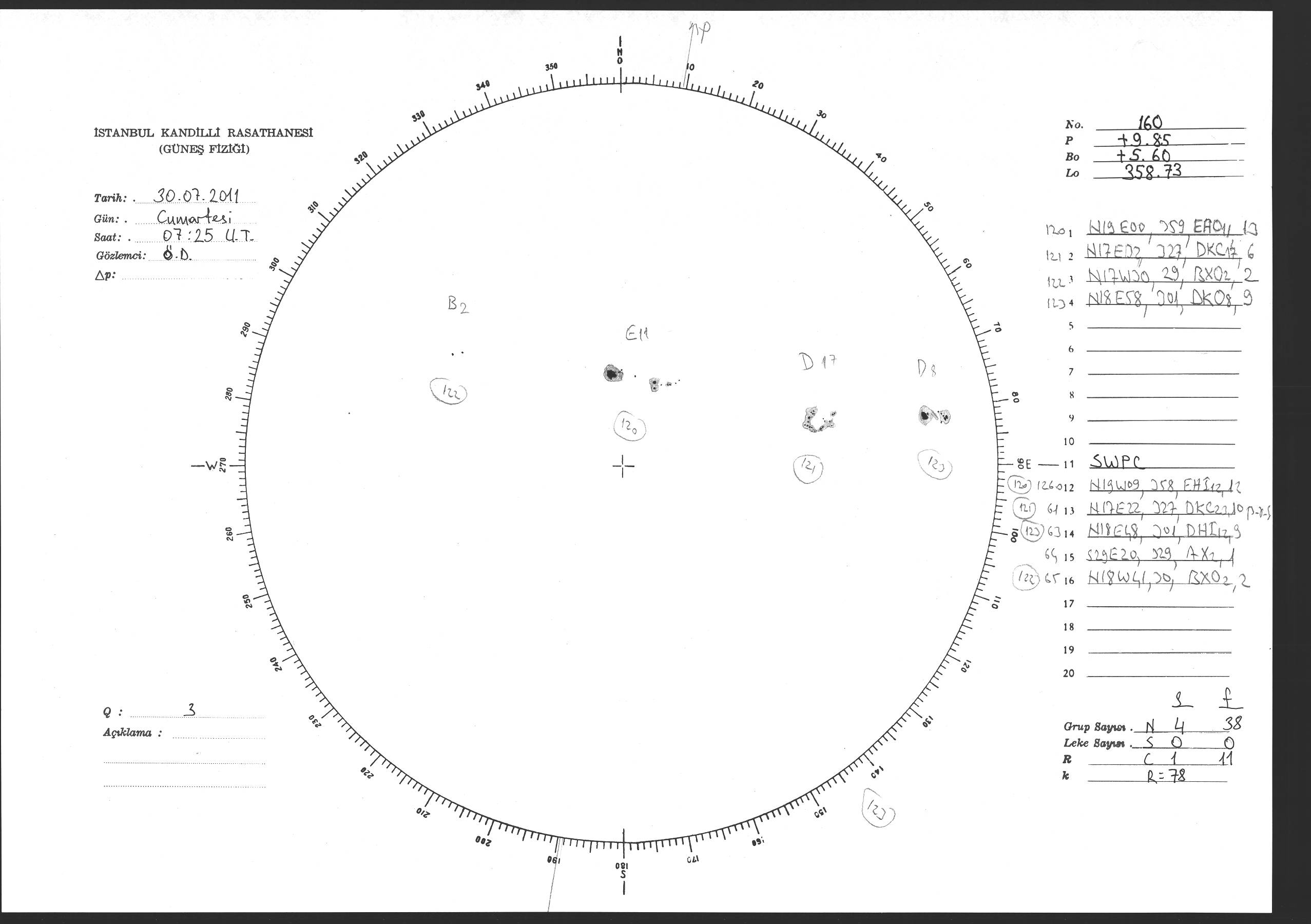 Güneş Lekesi Çizimi - 30.07.2011