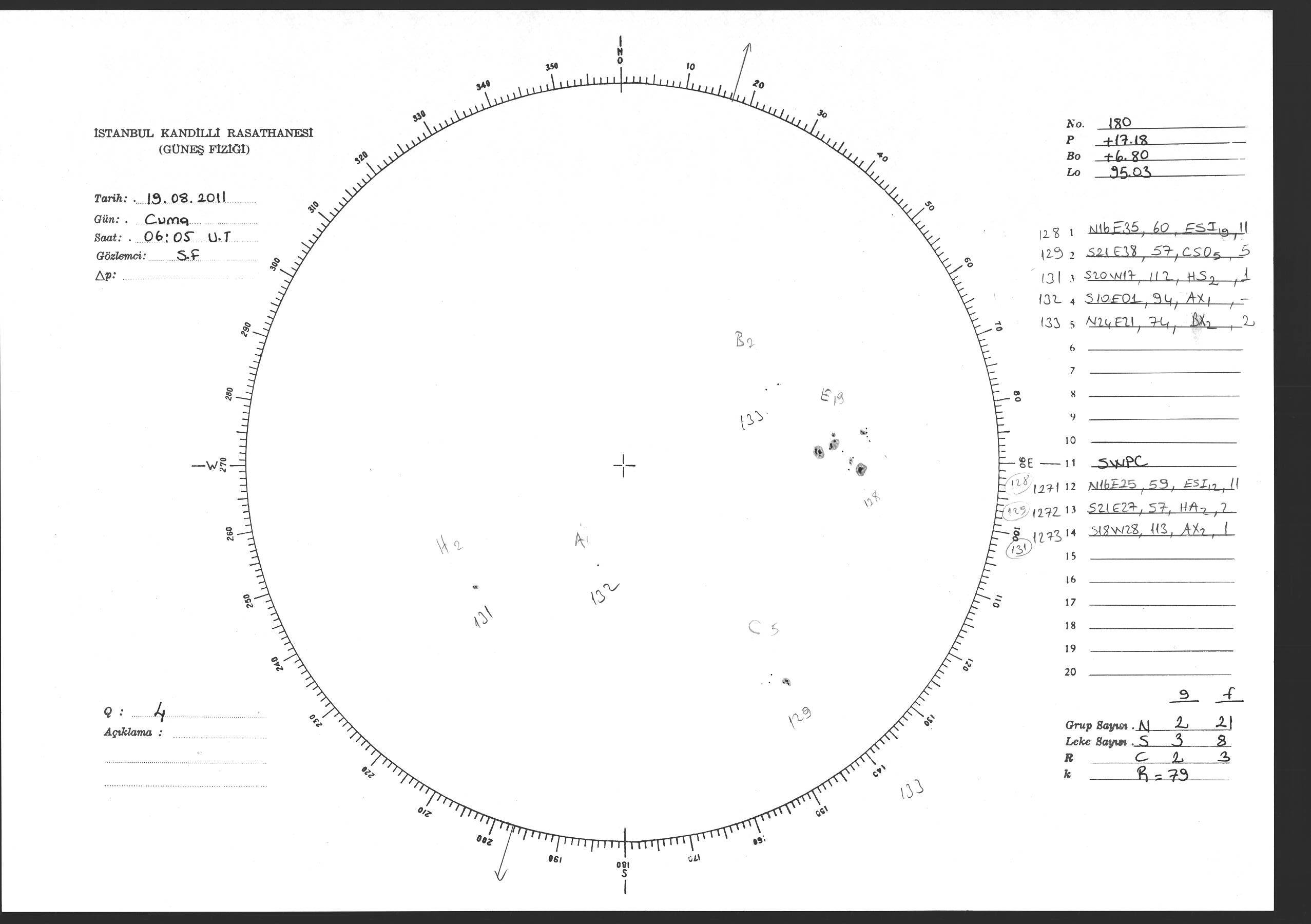 Güneş Lekesi Çizimi - 19.08.2011