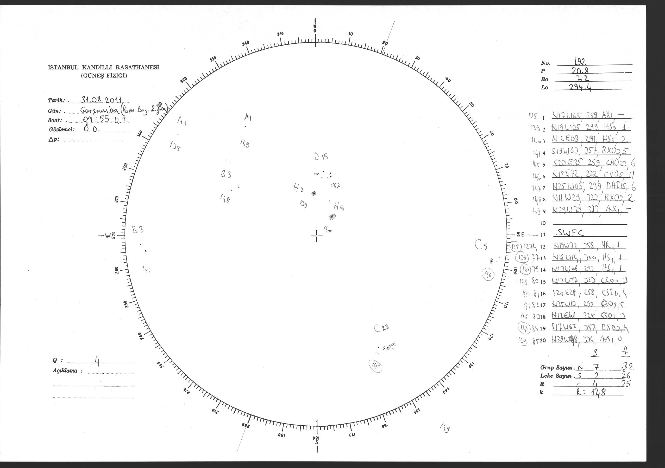 Güneş Lekesi Çizimi - 31.08.2011
