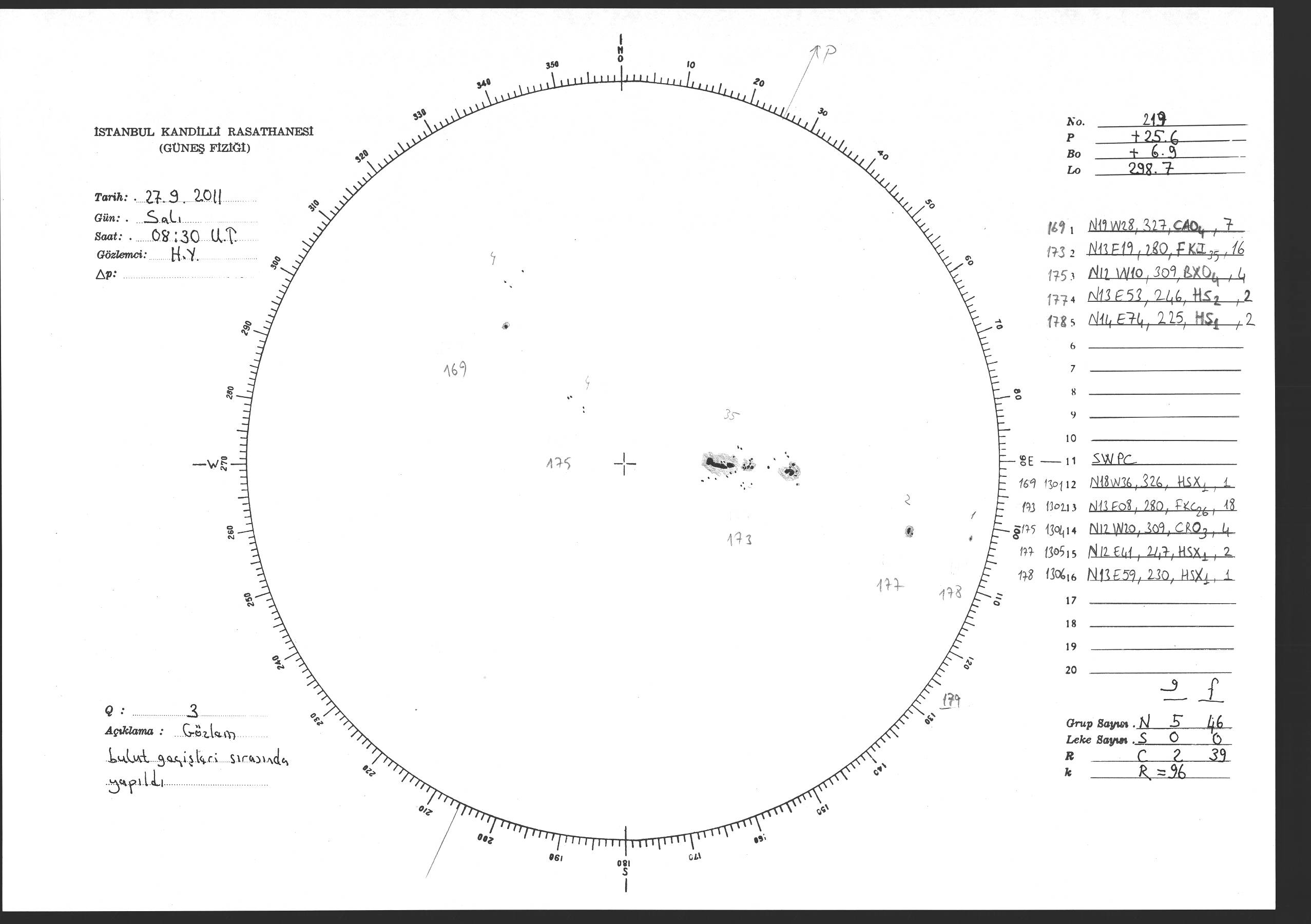 Güneş Lekesi Çizimi - 27.09.2011
