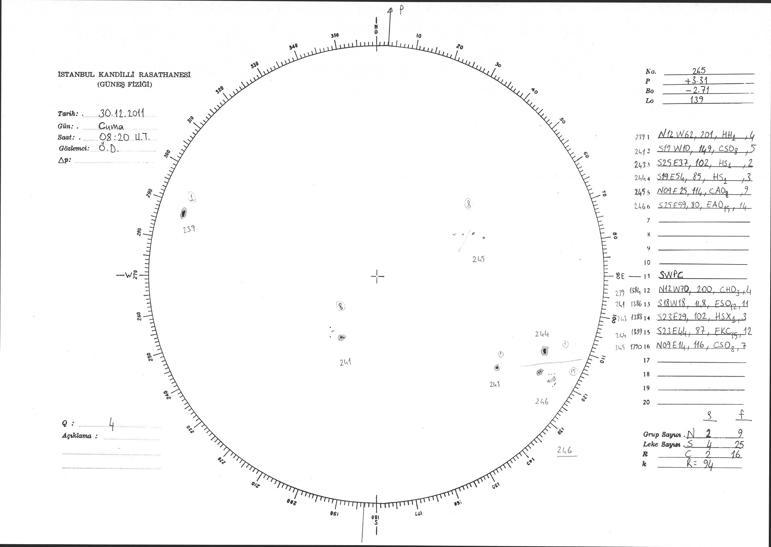 Güneş Lekesi Çizimi - 30.12.2011