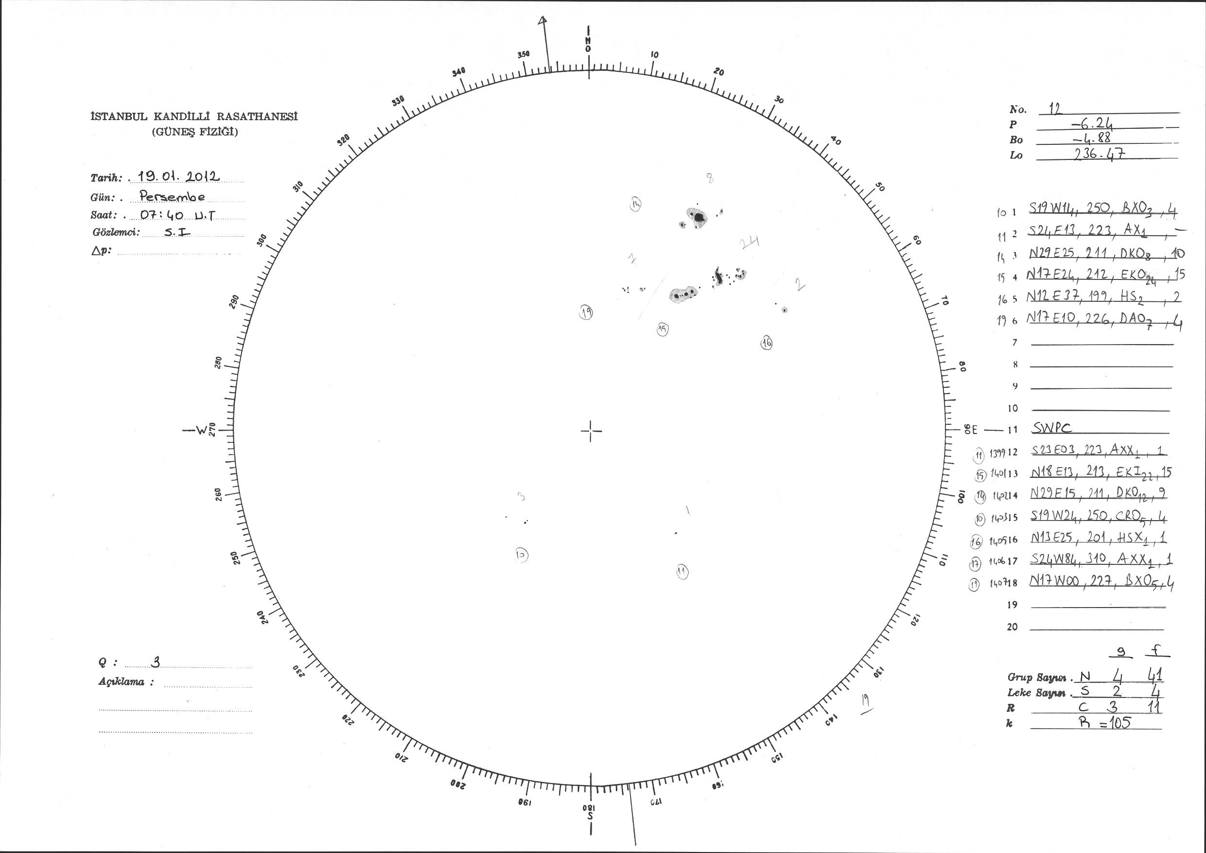 Güneş Lekesi Çizimi - 19.01.2012