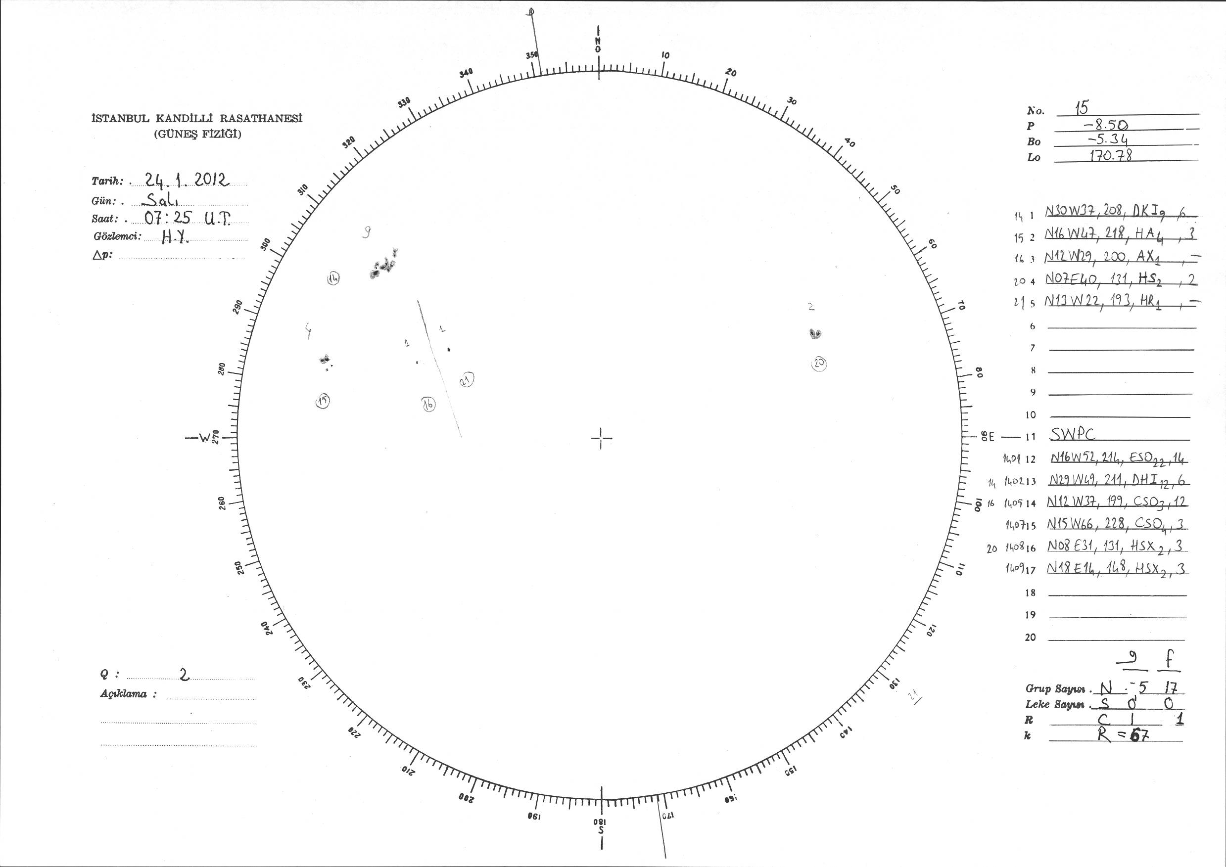 Güneş Lekesi Çizimi - 24.01.2012