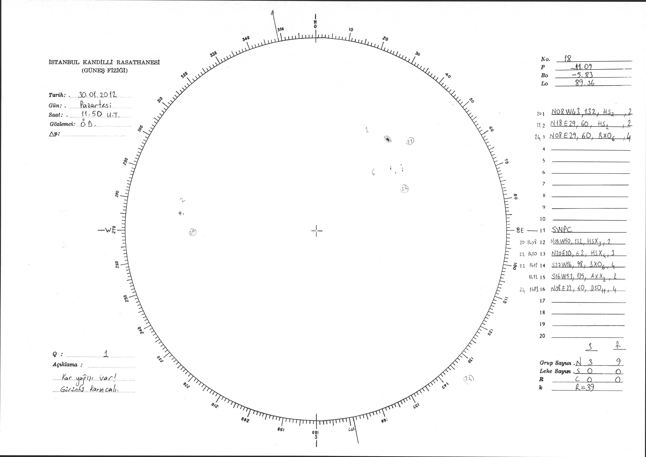 Güneş Lekesi Çizimi - 30.01.2012