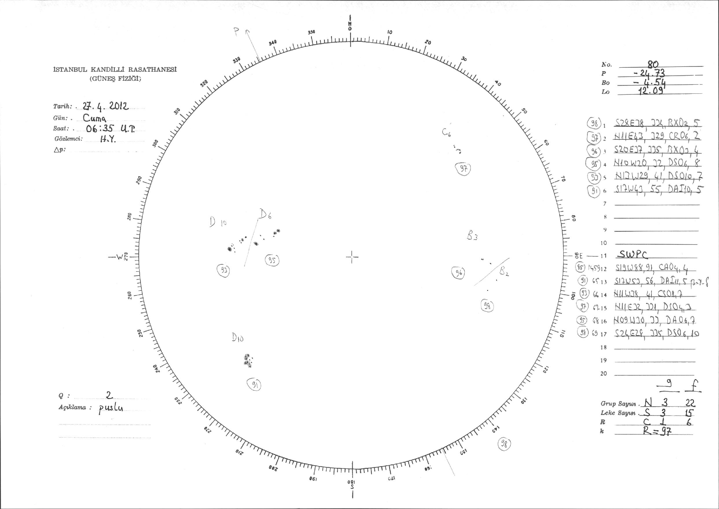 Güneş Lekesi Çizimi - 27.04.2012
