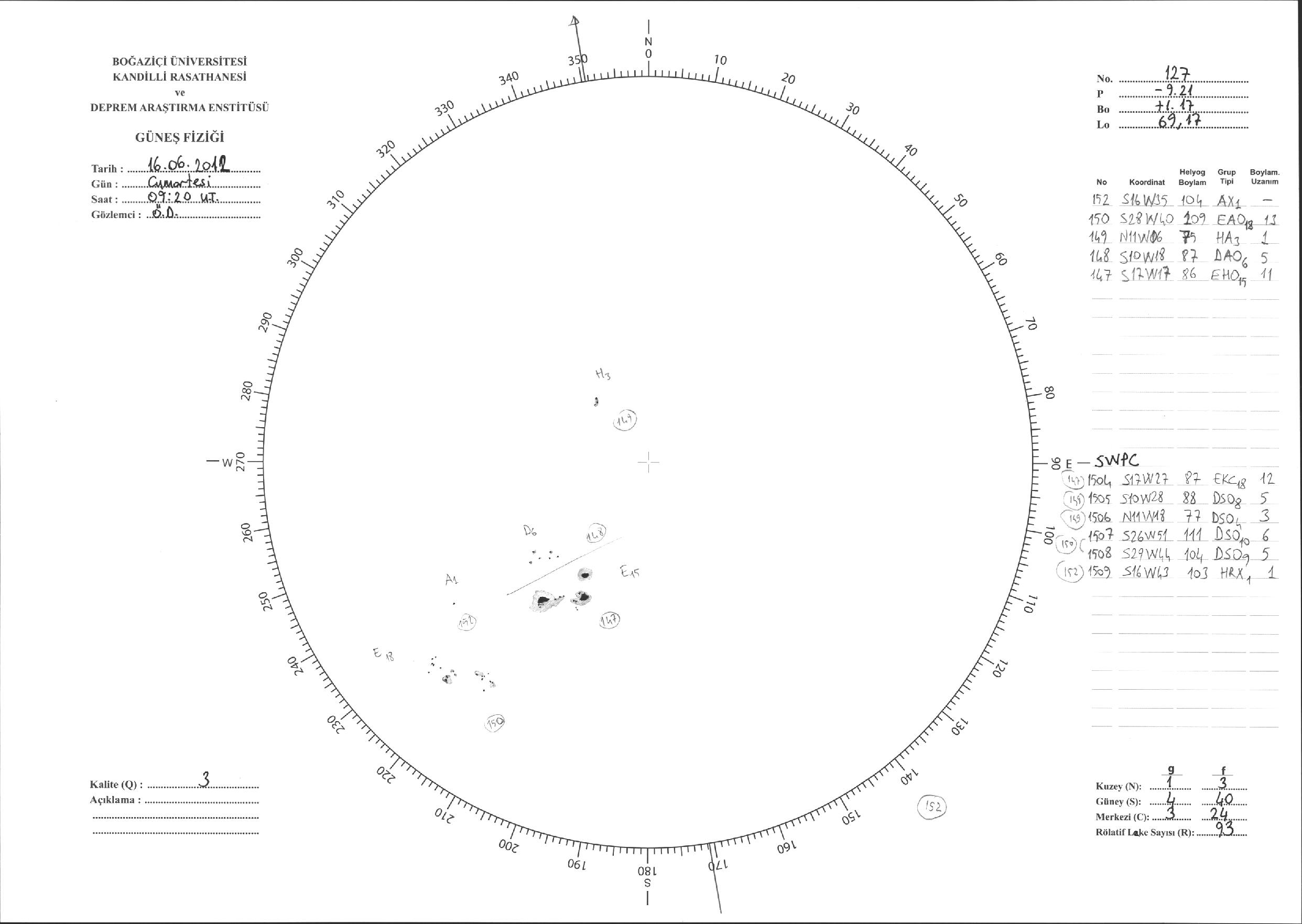 Güneş Lekesi Çizimi - 16.06.2012