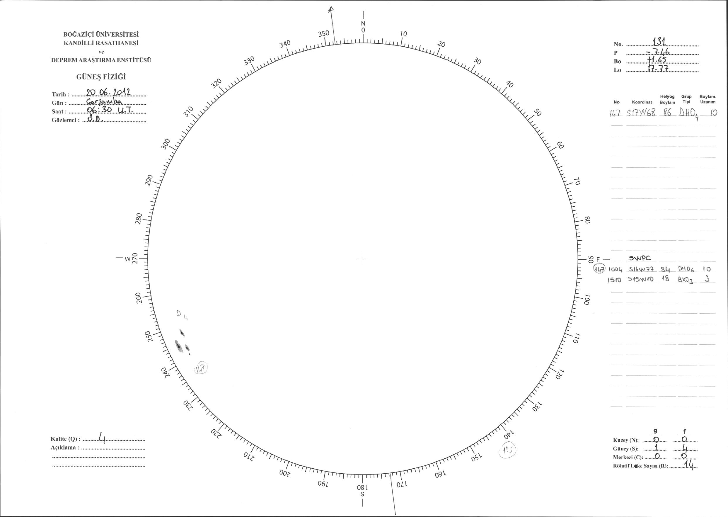 Güneş Lekesi Çizimi - 20.06.2012