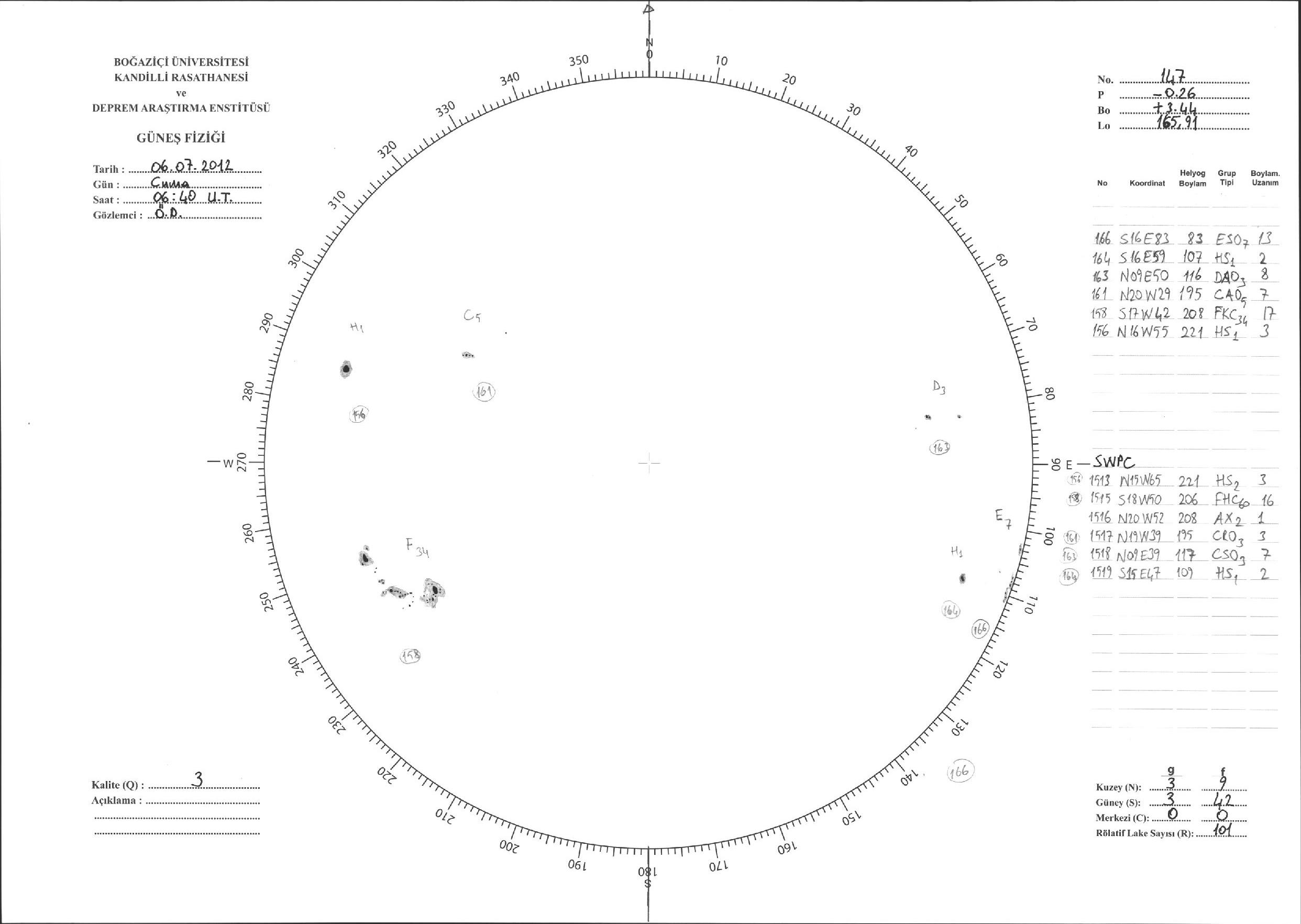 Güneş Lekesi Çizimi - 06.07.2012