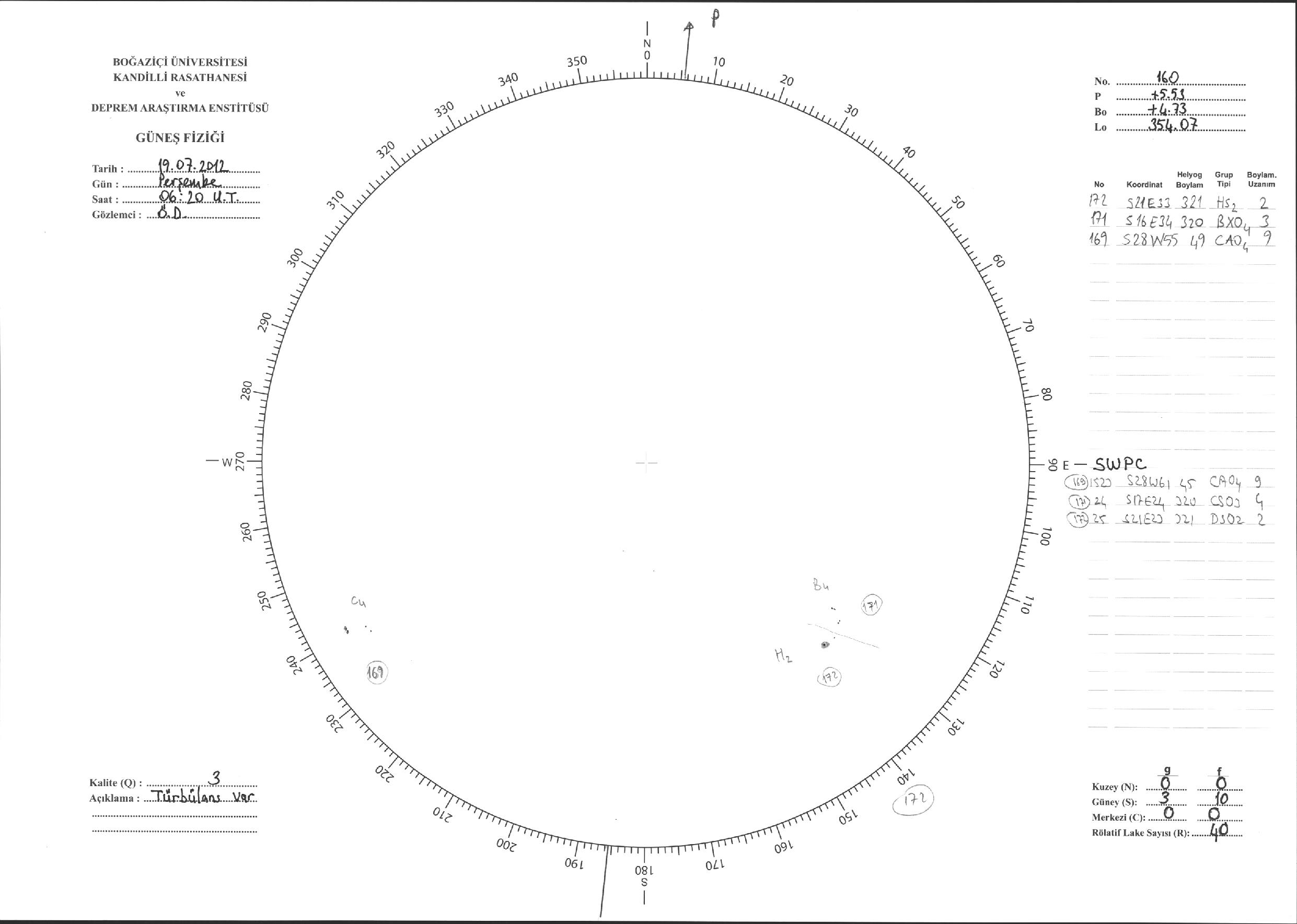 Güneş Lekesi Çizimi - 19.07.2012
