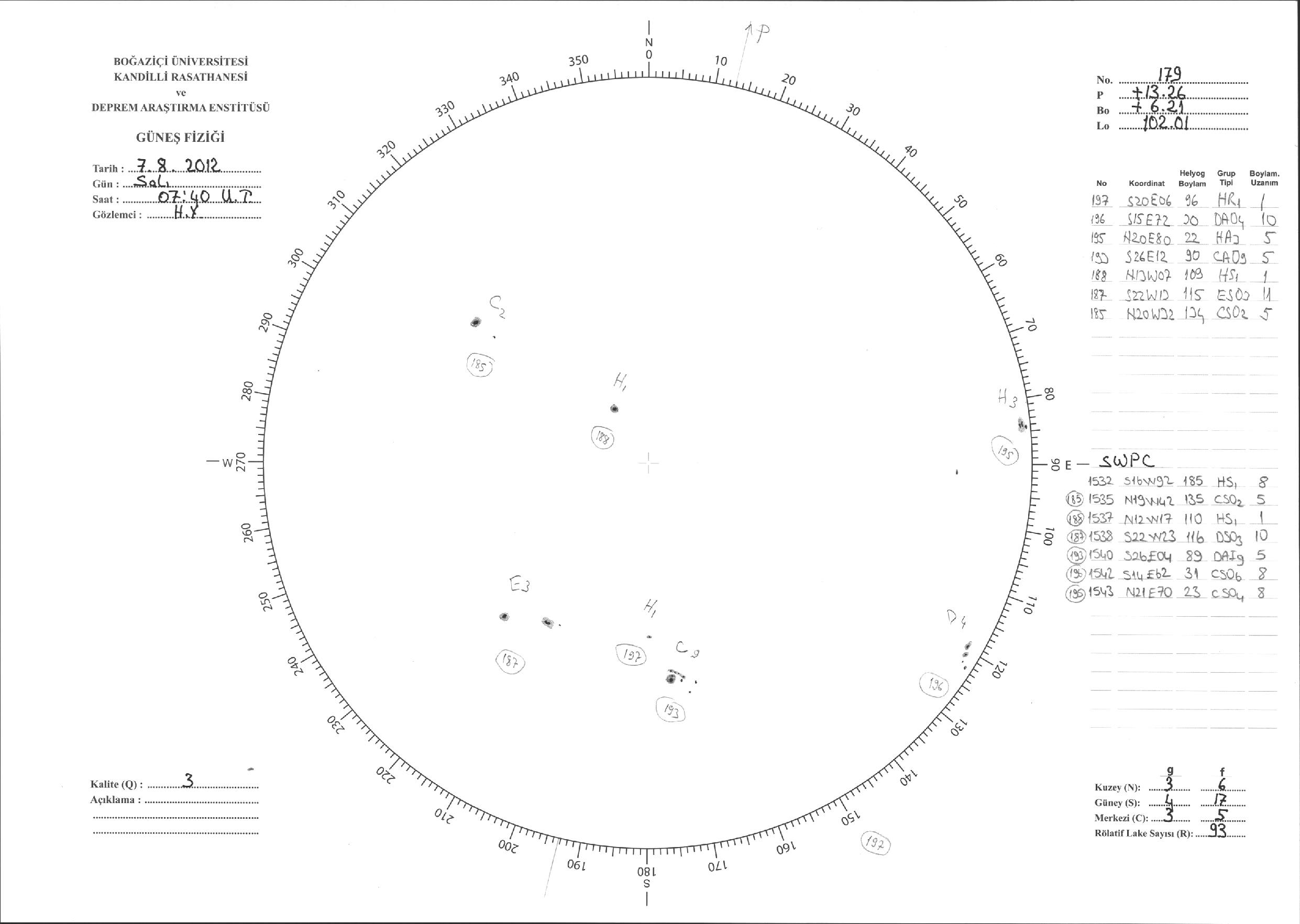 Güneş Lekesi Çizimi - 07.08.2012