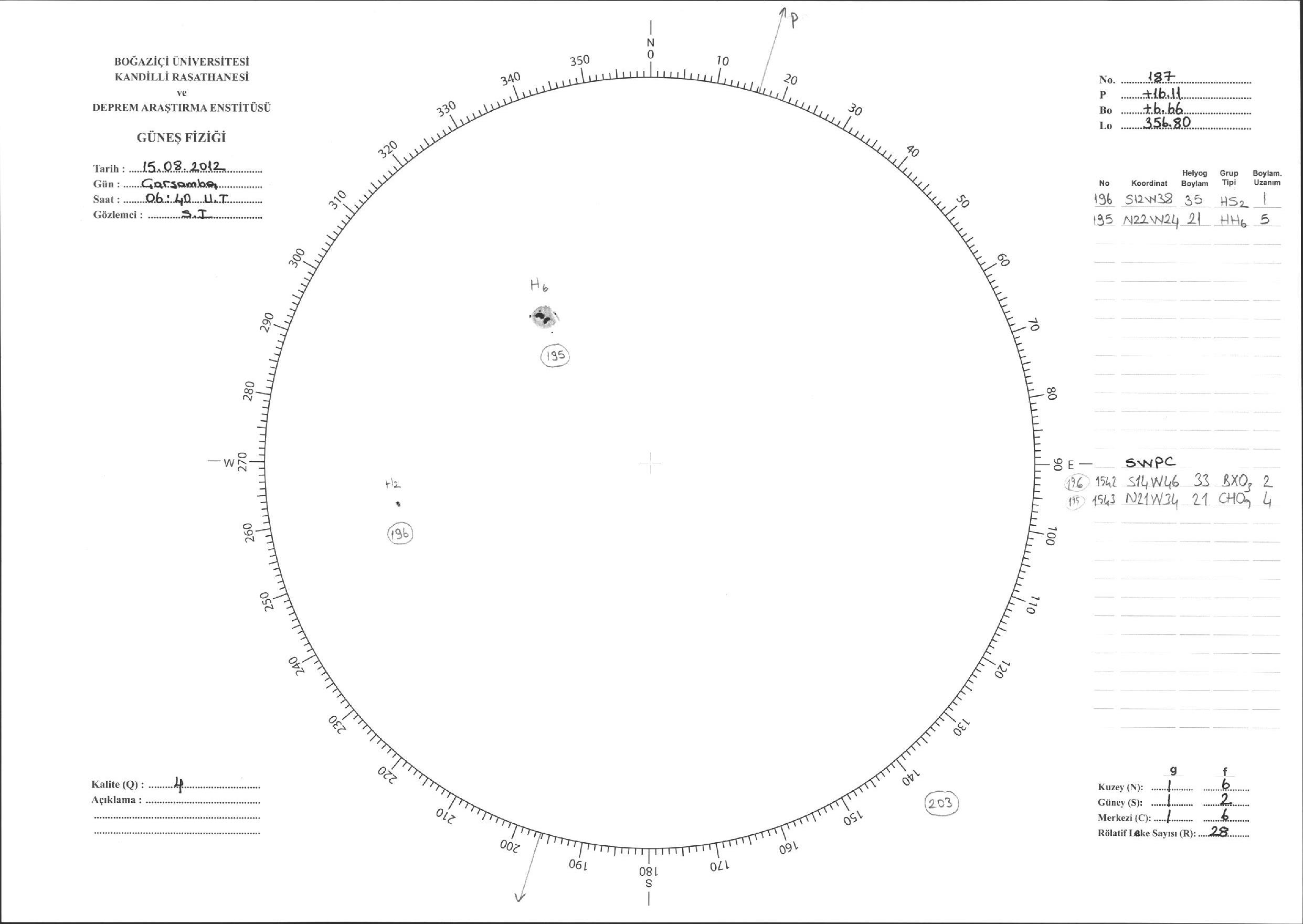 Güneş Lekesi Çizimi - 15.08.2012