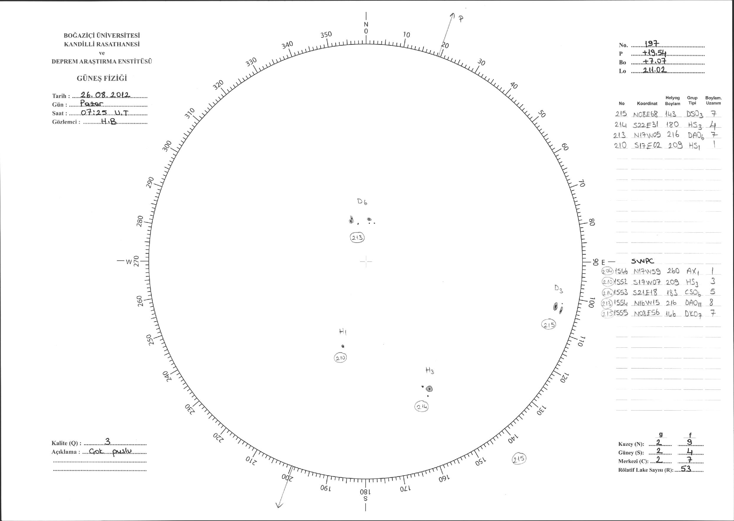 Güneş Lekesi Çizimi - 26.08.2012