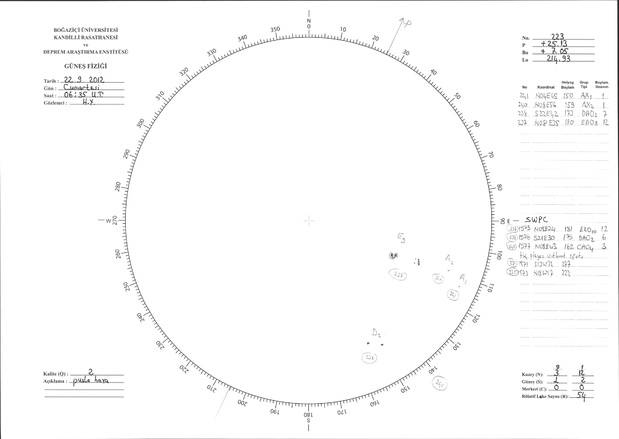 Güneş Lekesi Çizimi - 22.09.2012