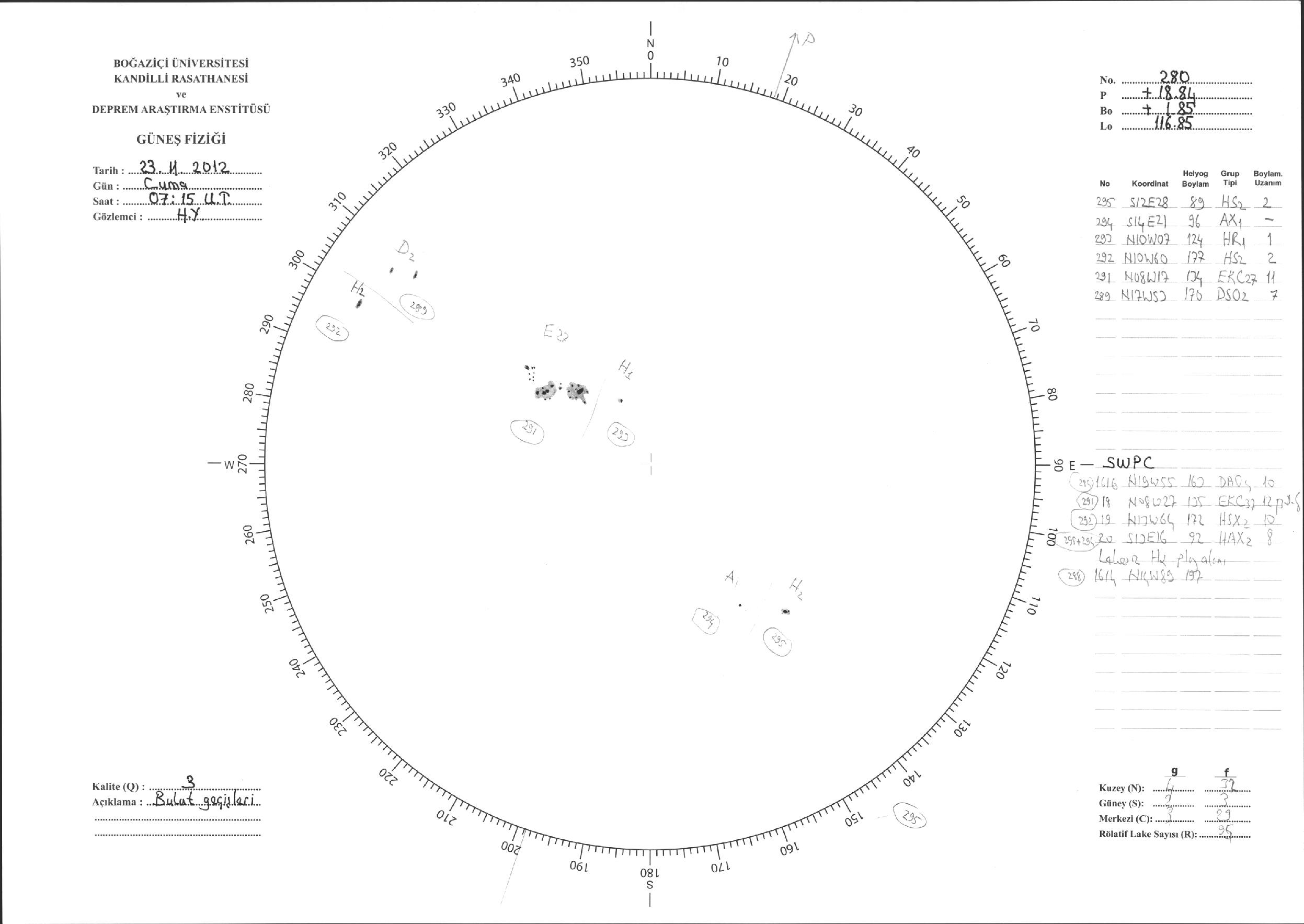 Güneş Lekesi Çizimi - 23.11.2012