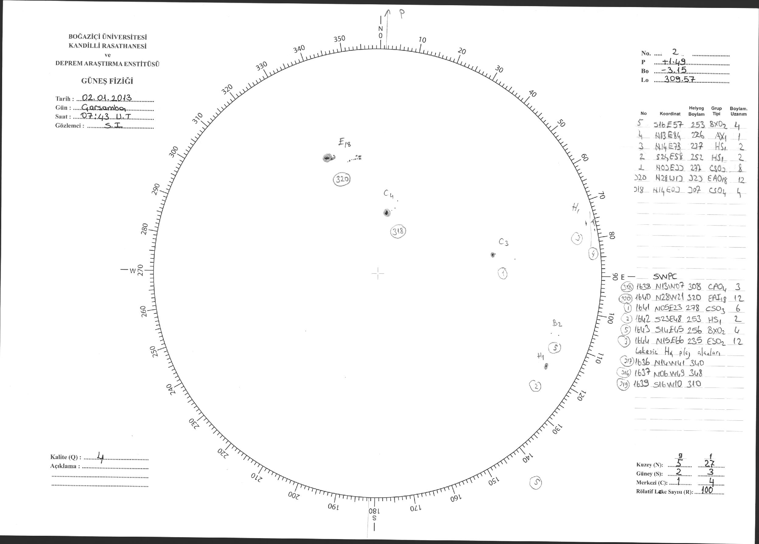 Güneş Lekesi Çizimi - 02.01.2013
