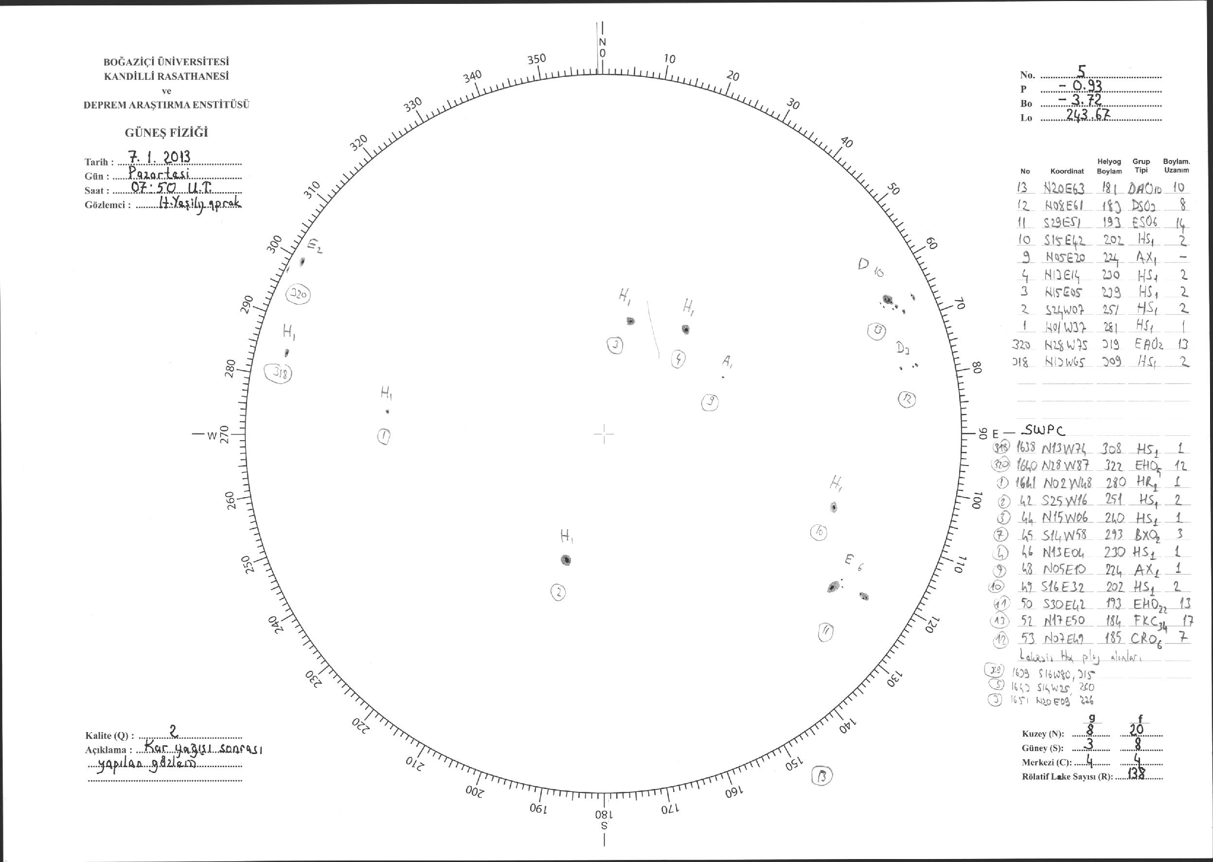 Güneş Lekesi Çizimi - 07.01.2013