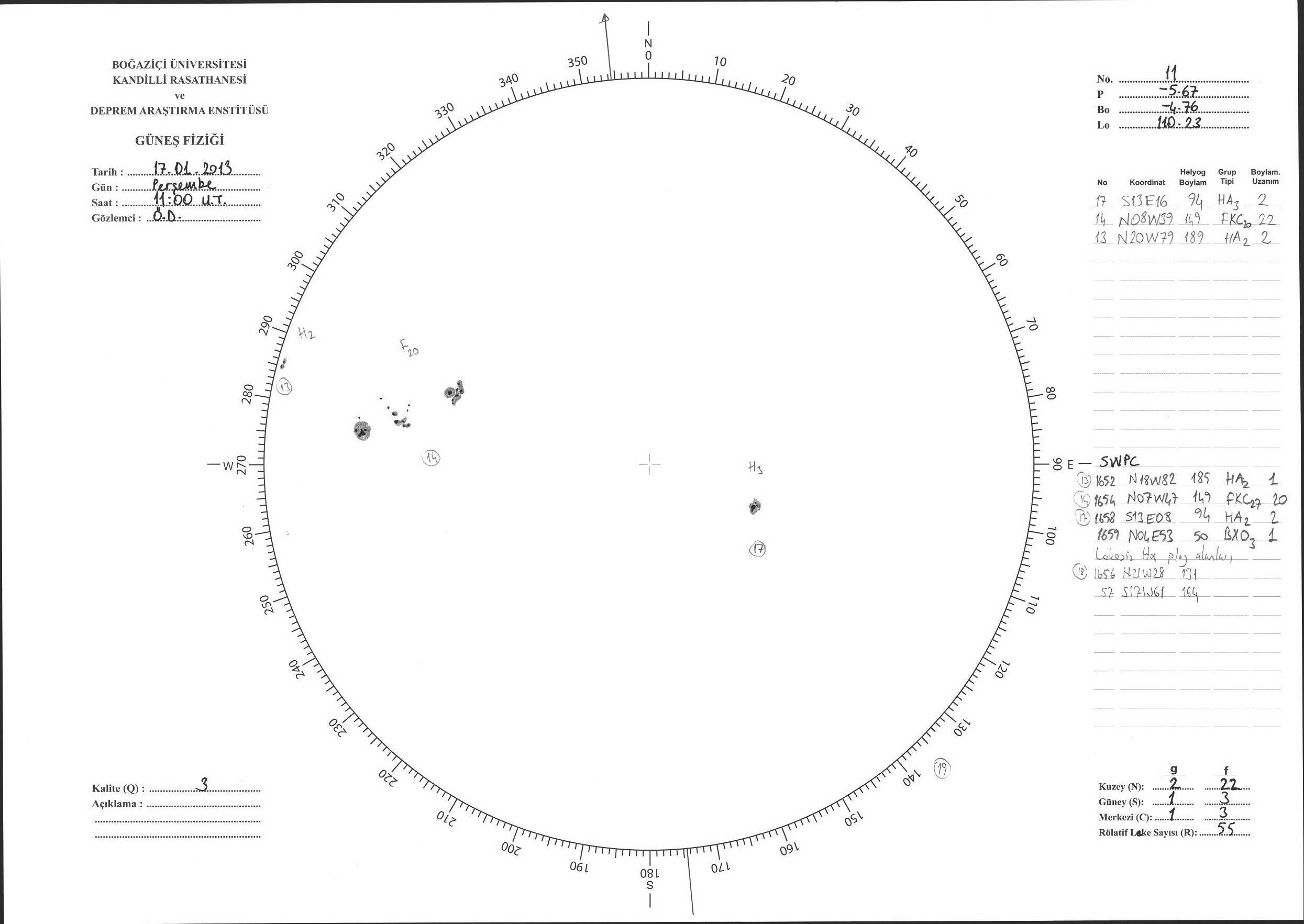 Güneş Lekesi Çizimi - 17.01.2013