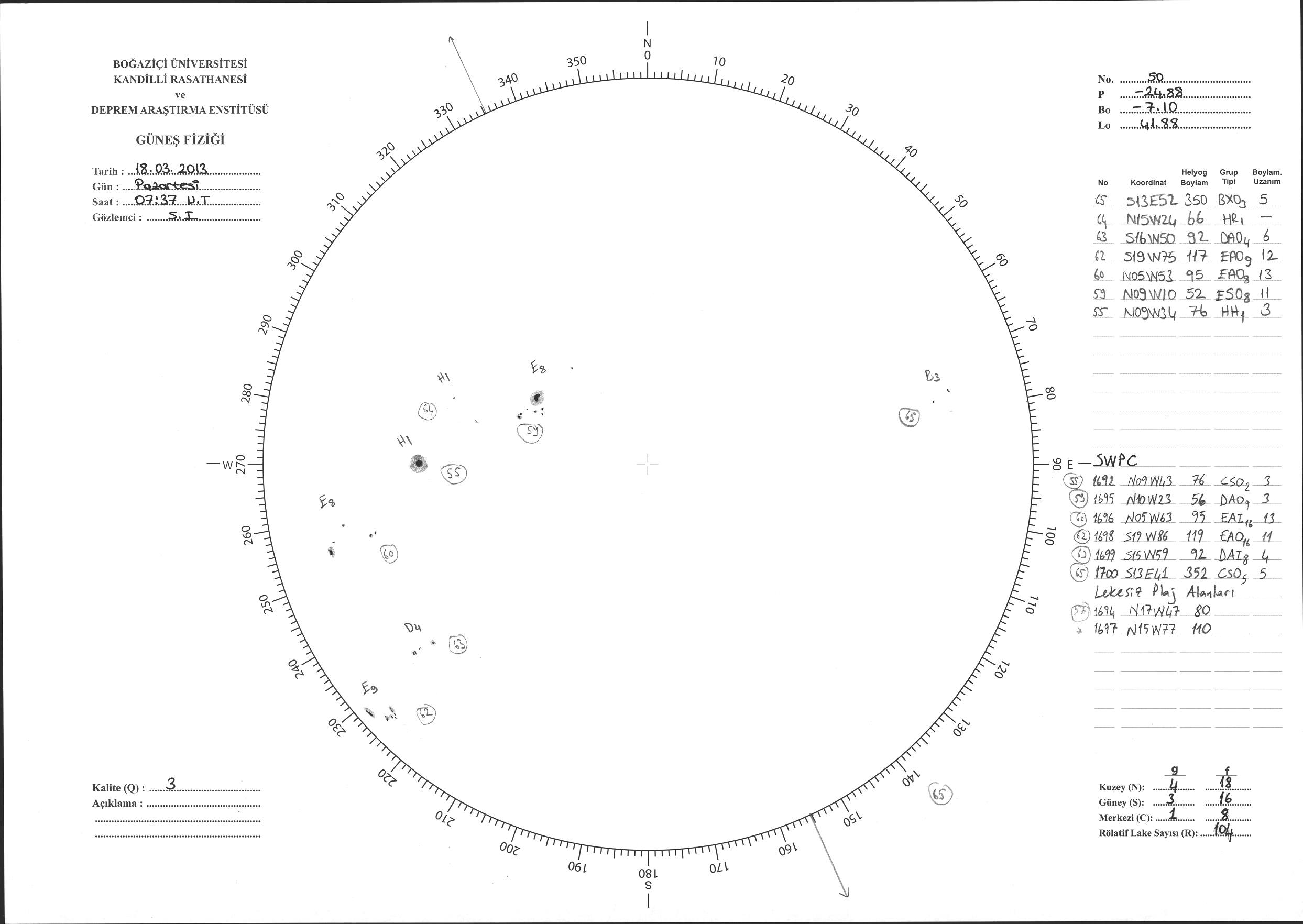Güneş Lekesi Çizimi - 18.03.2013