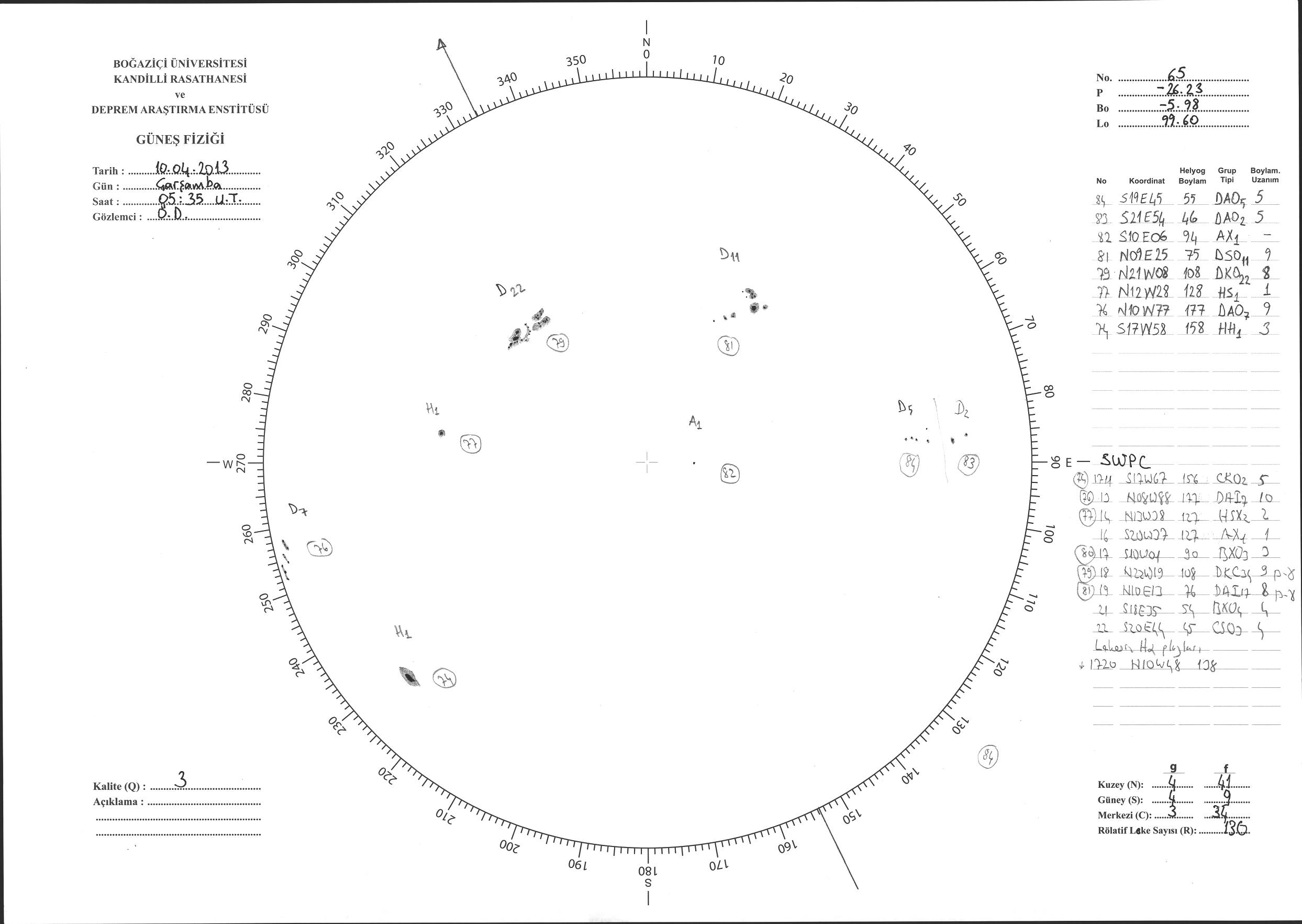 Güneş Lekesi Çizimi - 10.04.2013