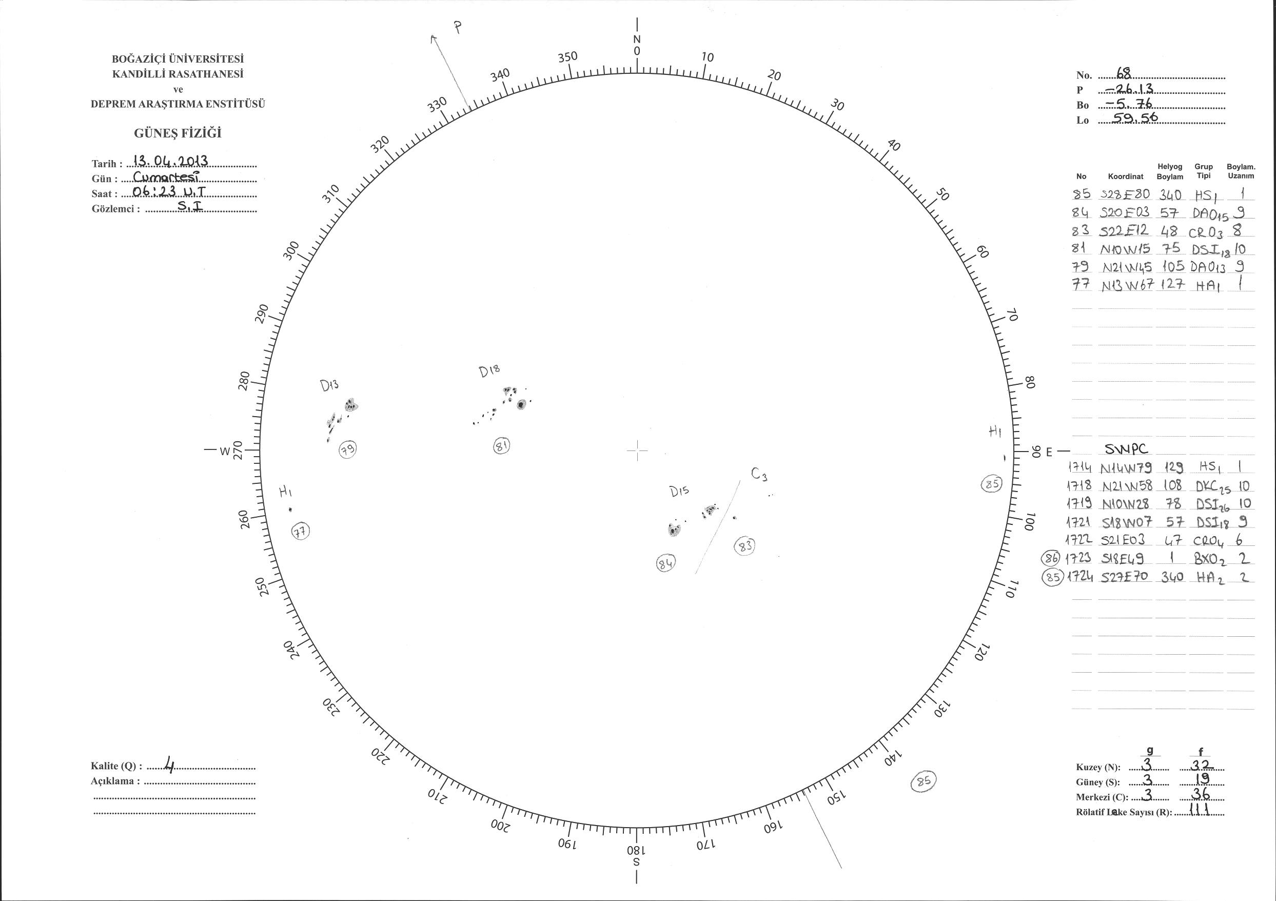 Güneş Lekesi Çizimi - 13.04.2013