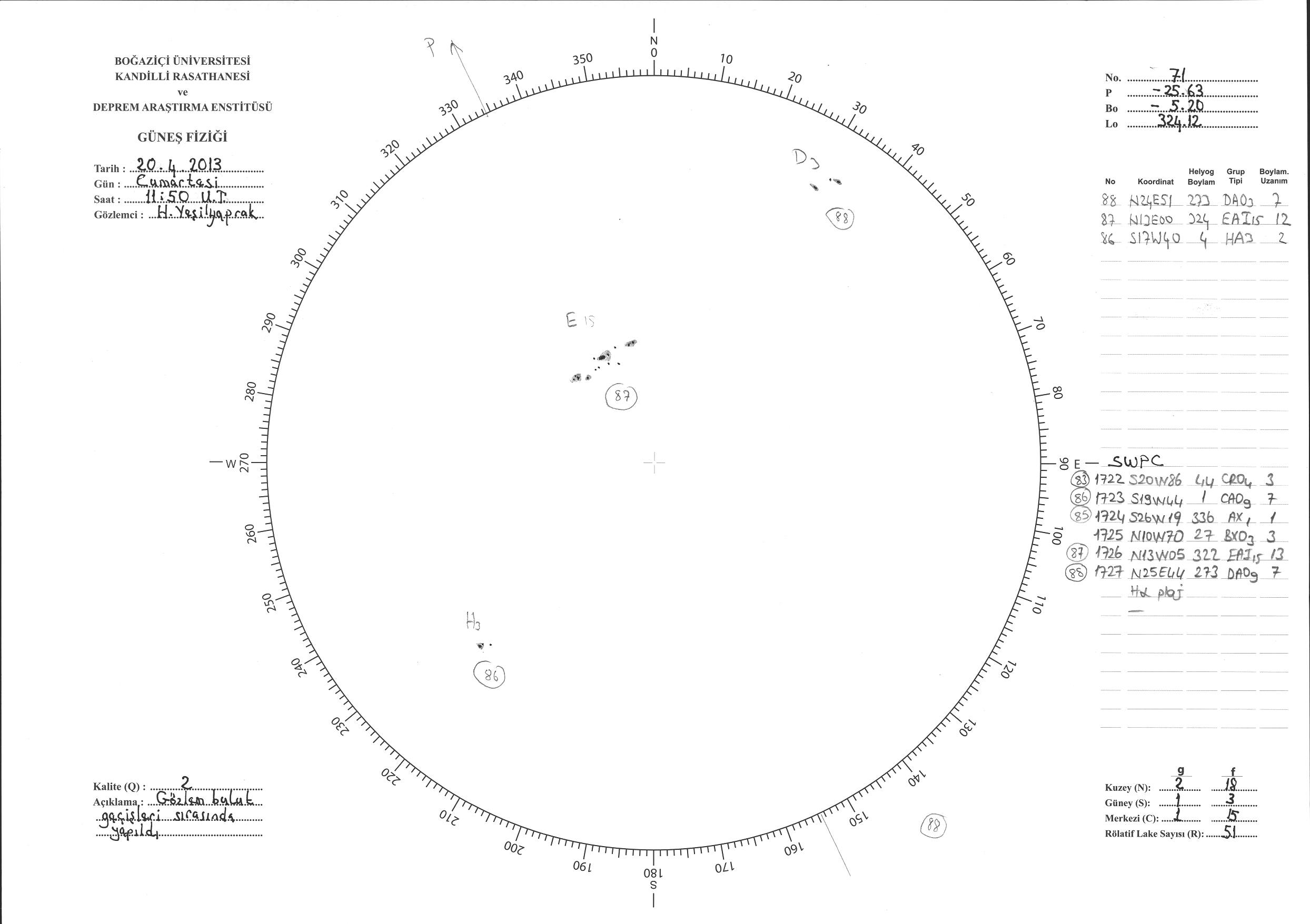 Güneş Lekesi Çizimi - 20.04.2013