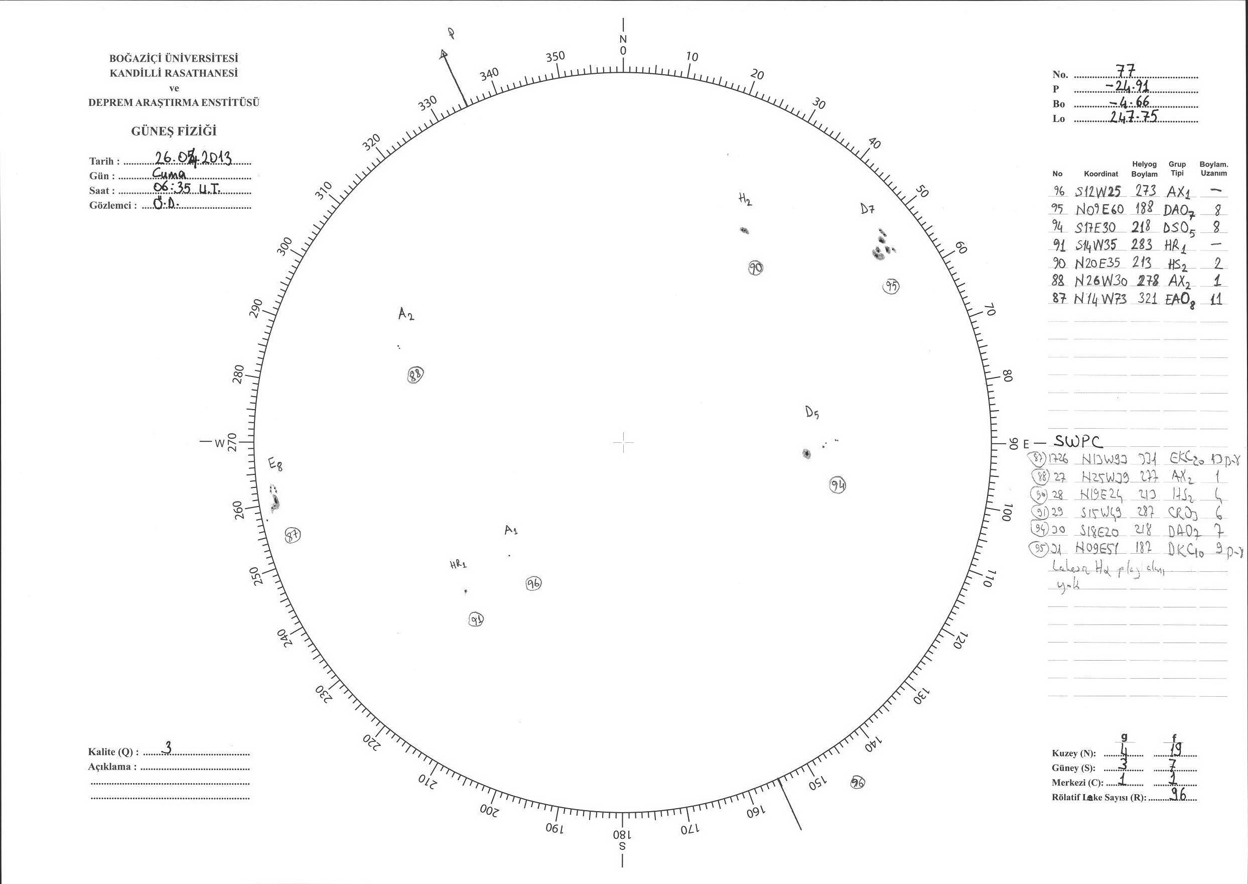 Güneş Lekesi Çizimi - 26.04.2013