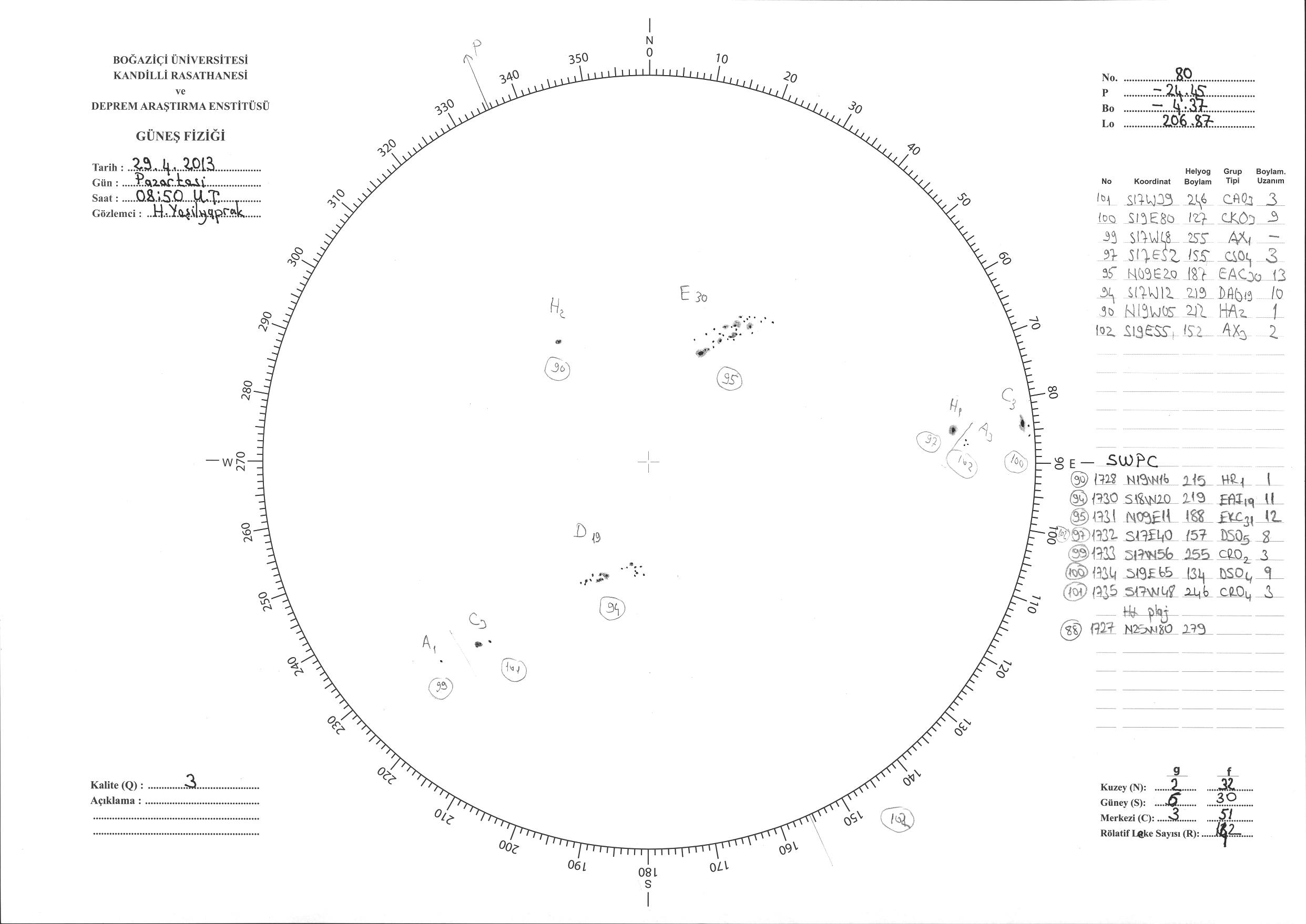 Güneş Lekesi Çizimi - 29.04.2013