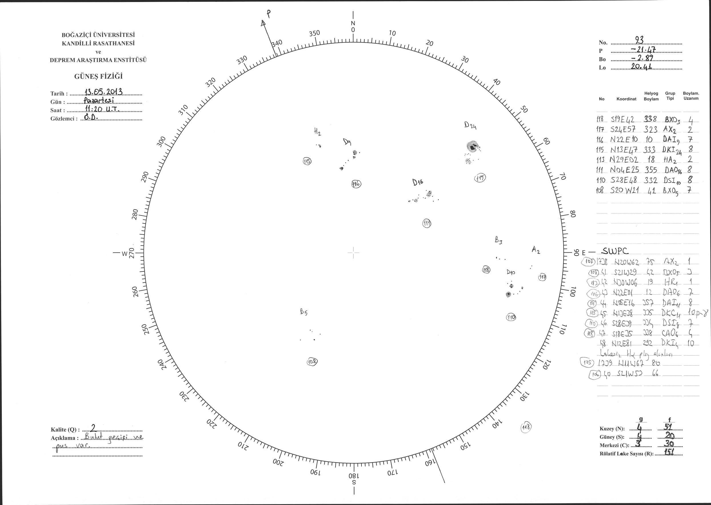Güneş Lekesi Çizimi - 13.05.2013