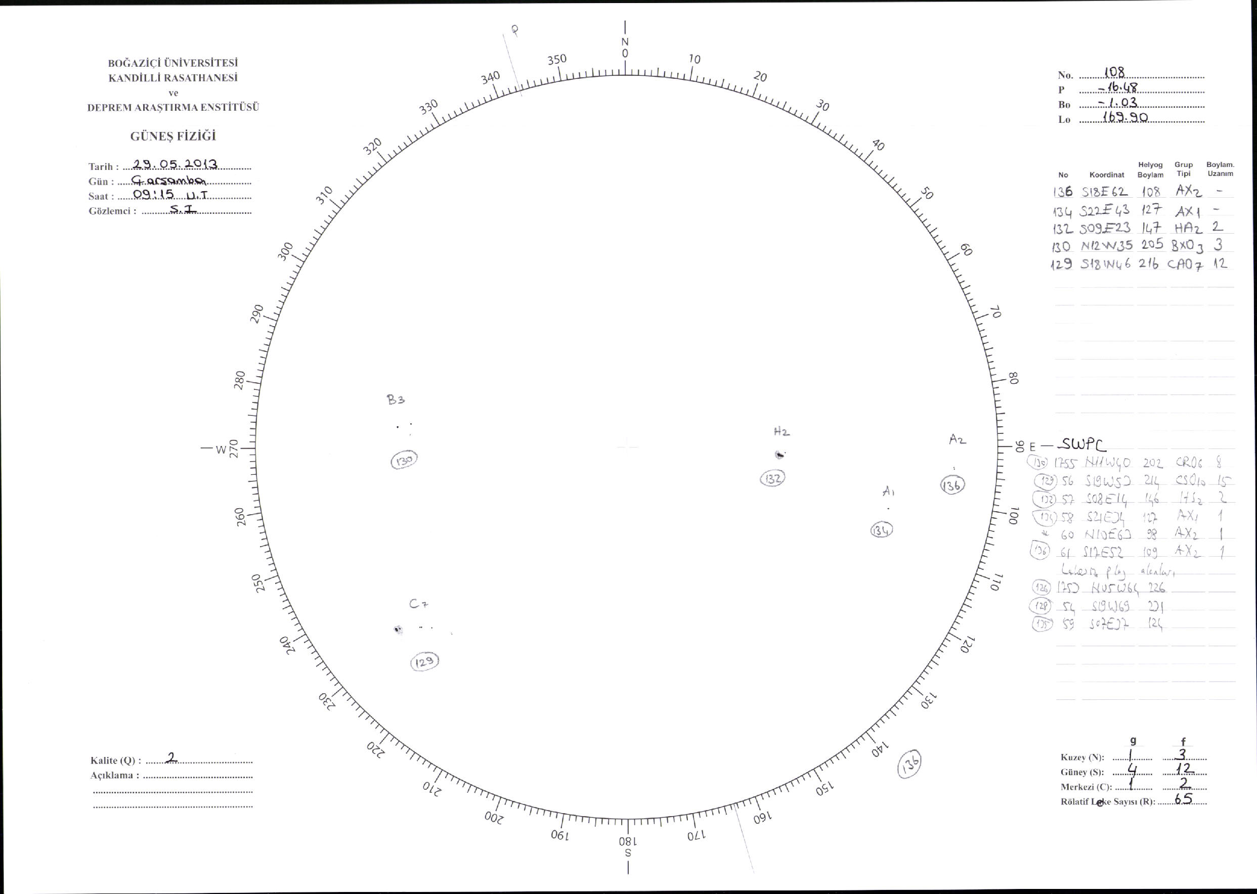 Güneş Lekesi Çizimi - 29.05.2013