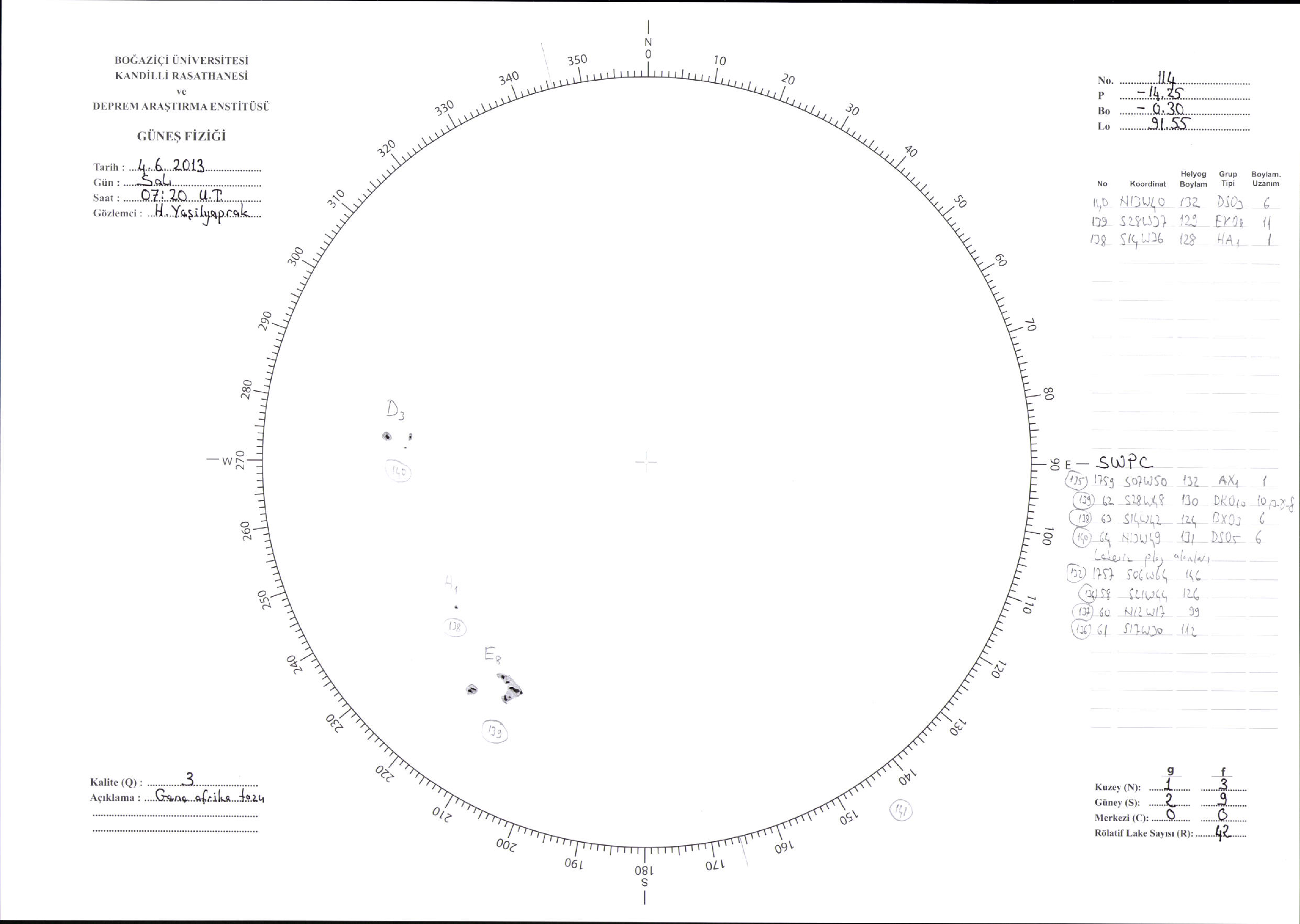 Güneş Lekesi Çizimi - 04.06.2013