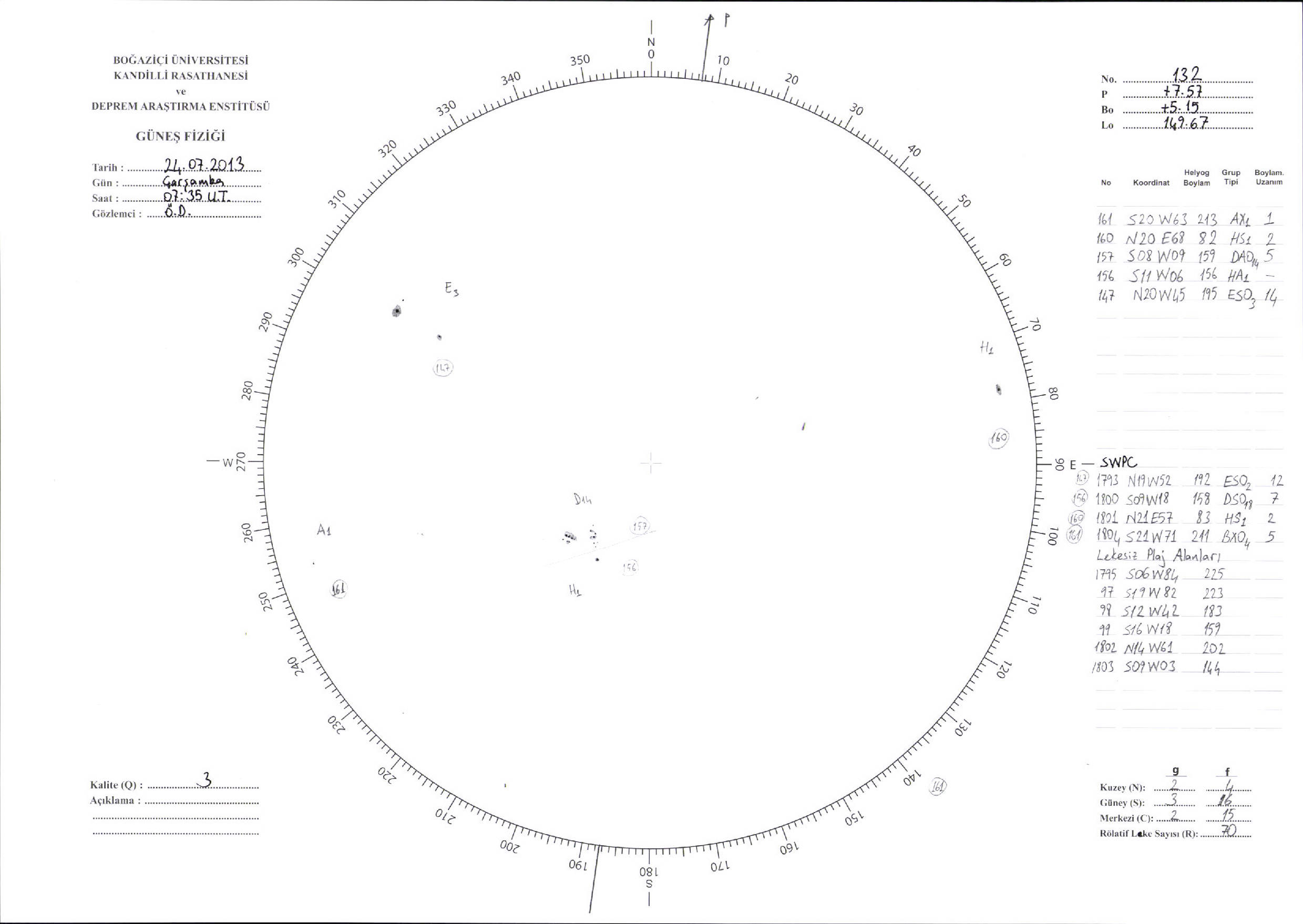 Güneş Lekesi Çizimi - 24.07.2013