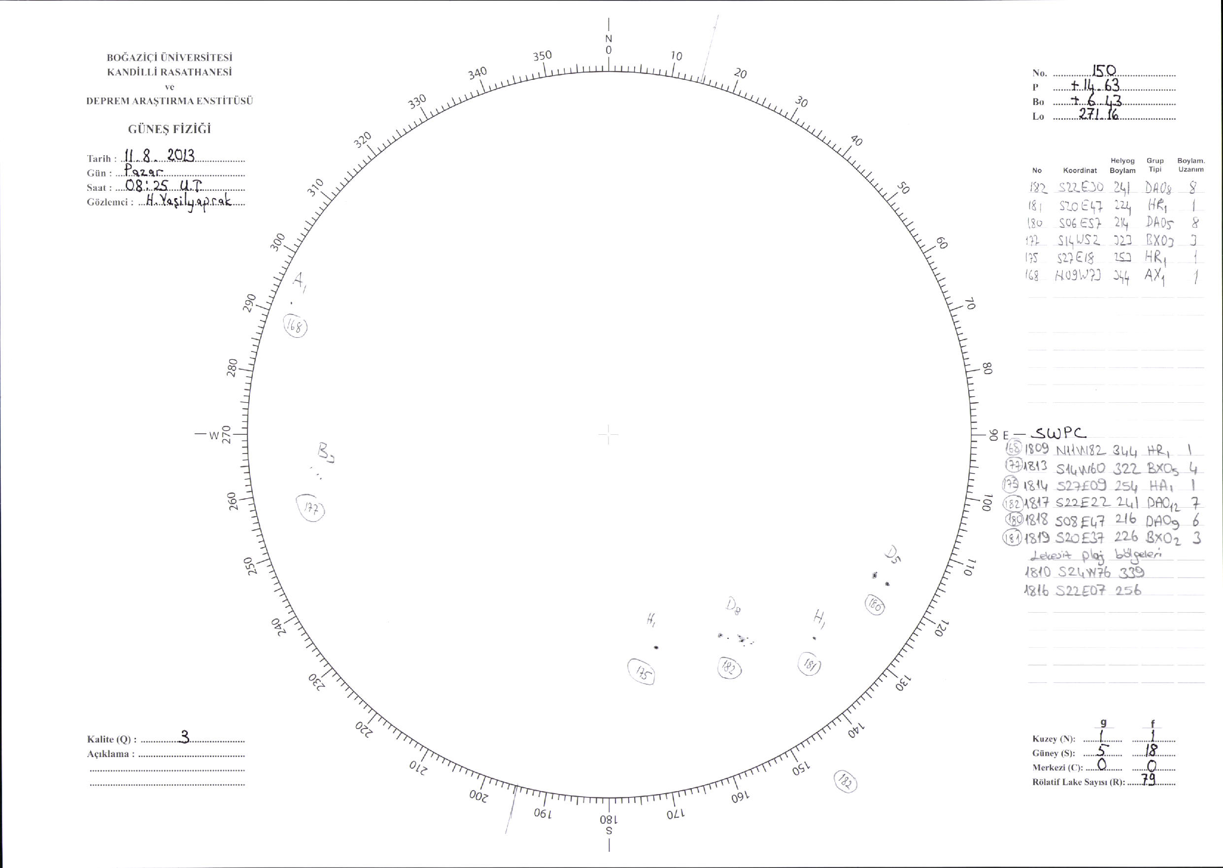 Güneş Lekesi Çizimi - 11.08.2013