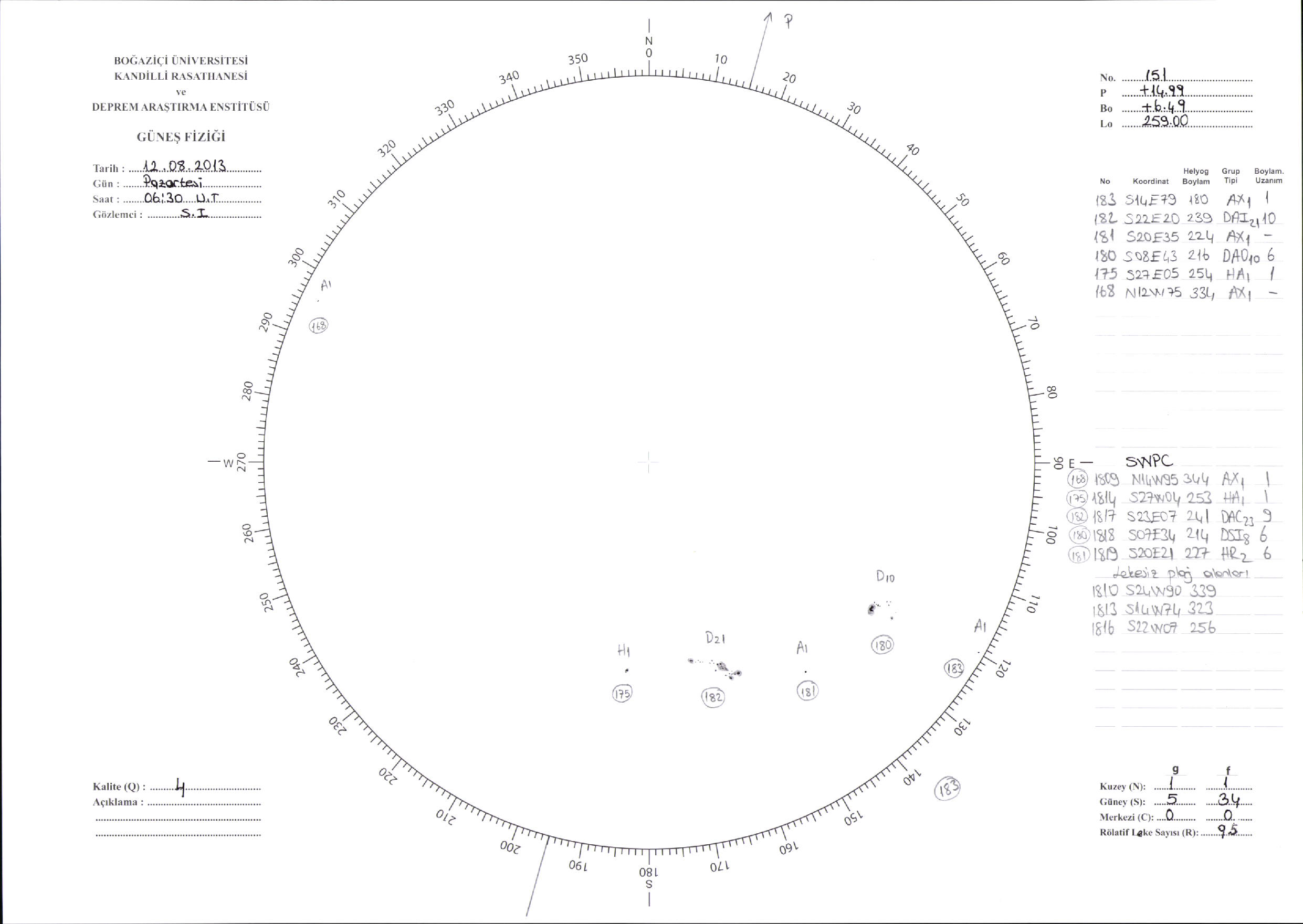 Güneş Lekesi Çizimi - 12.08.2013