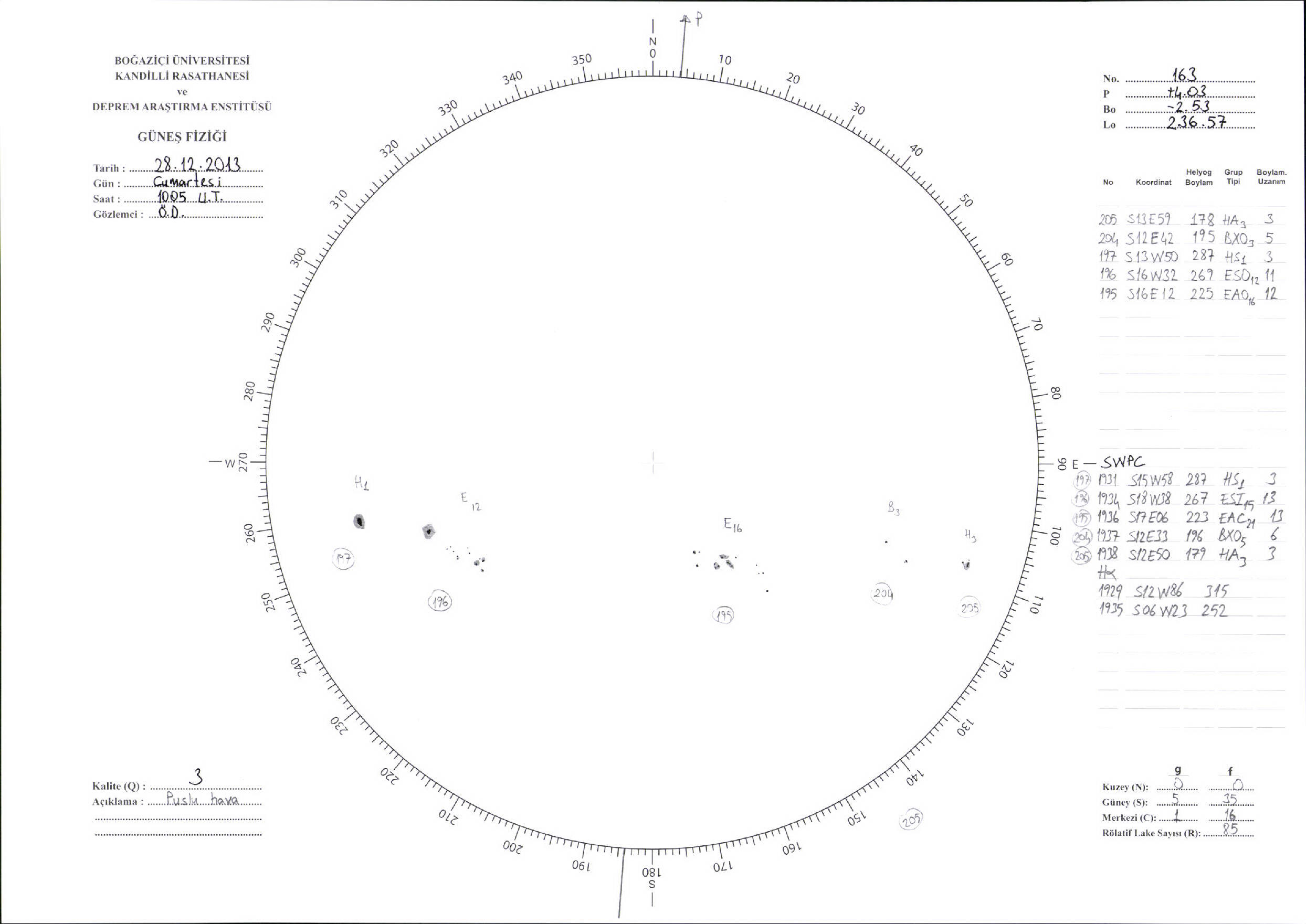 Güneş Lekesi Çizimi - 28.12.2013