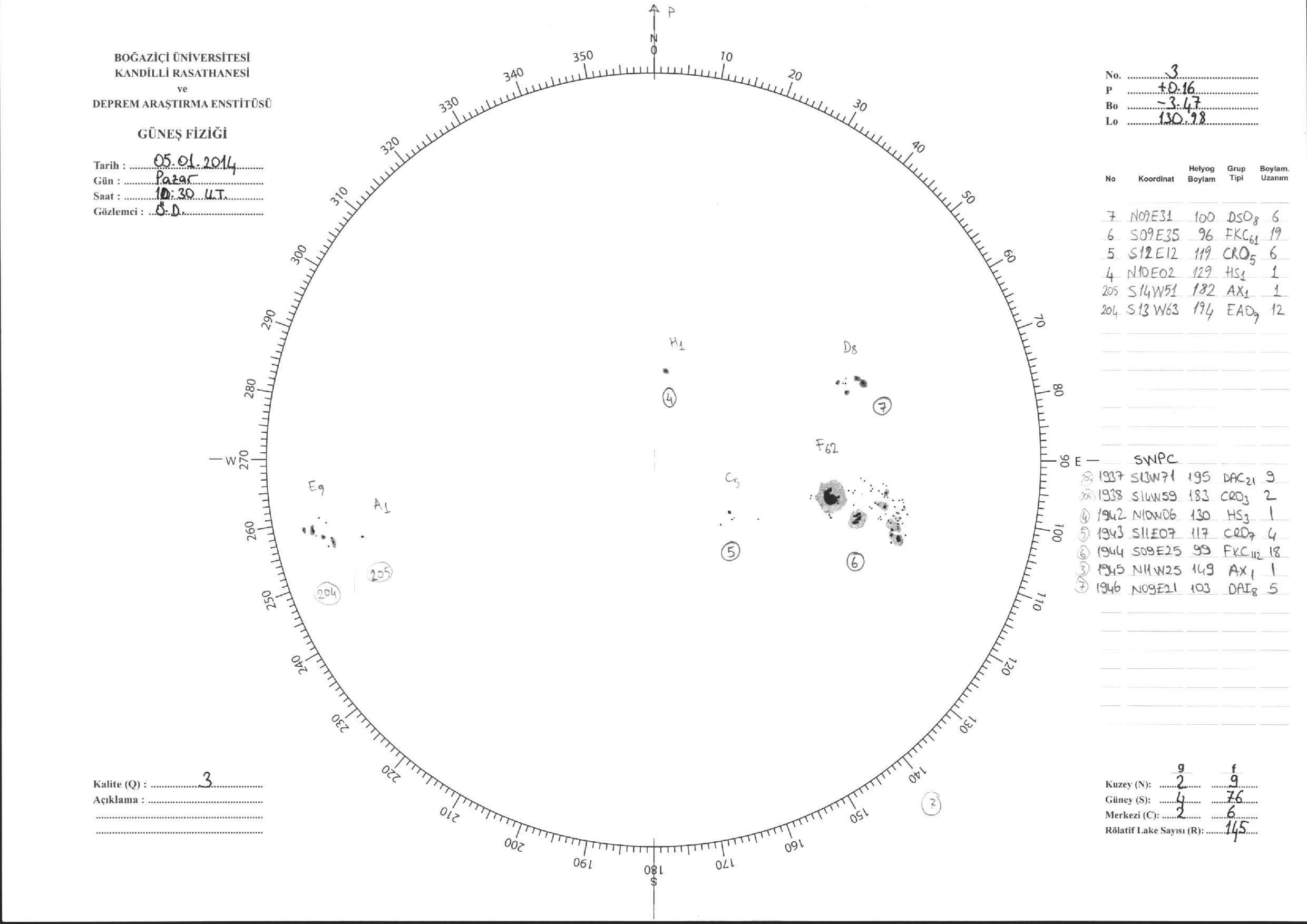 Güneş Lekesi Çizimi - 05.01.2014