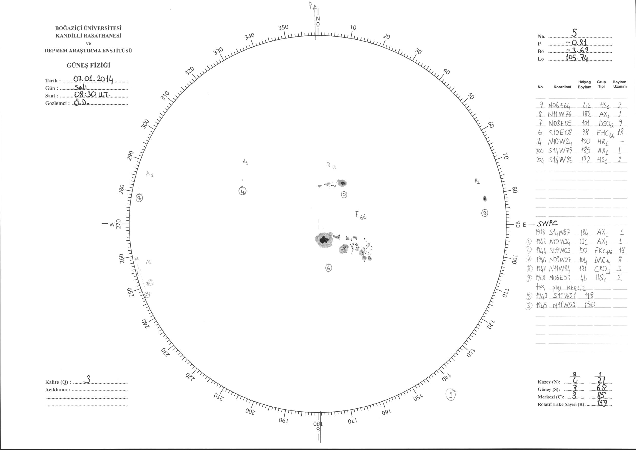 Güneş Lekesi Çizimi - 07.01.2014